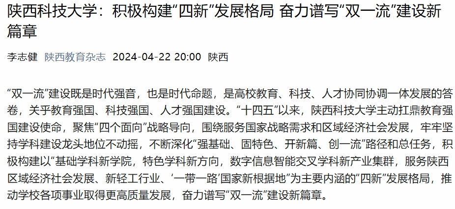 《陜西教育》雜志官方微信公眾號:陜西科技大學:積極構建“四新”發(fā)展格局 奮力譜寫“雙一流”建設新篇章