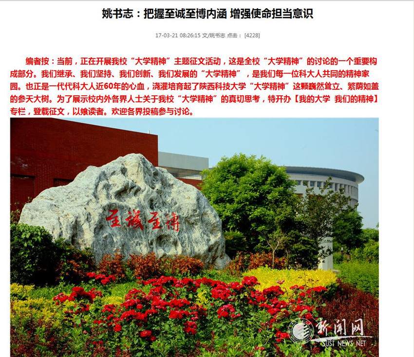 凝聚歷史文化傳統(tǒng)、體現(xiàn)鮮明精神文化特色、匯聚著當(dāng)代陜科大人意志品質(zhì)的大學(xué)精神,就是我們陜科大人文化自信的底氣。