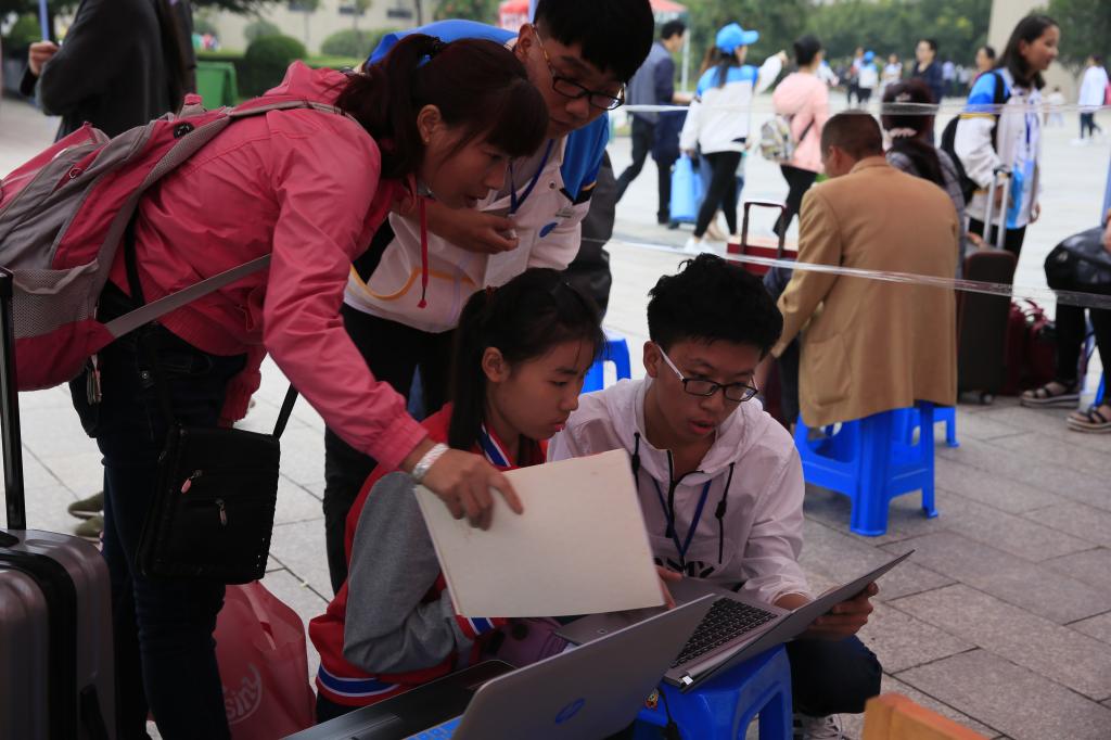位于迎賓大道的各學(xué)院(部)迎新接待點(diǎn)是2017年迎新工作的主陣地,姚書志向現(xiàn)場的工作人員詳細(xì)了各學(xué)院、專業(yè)新生的報(bào)名情況,對(duì)各學(xué)院、有關(guān)職能部門在迎新工作中的惠生便民的新思路、新做法給予肯定。記者在現(xiàn)場看到,各學(xué)院(部)迎新工作順利開展,報(bào)到流程指示牌懸掛明晰,現(xiàn)場井然有序,截止中午12點(diǎn),各學(xué)院新生報(bào)到人數(shù)已超過85%。