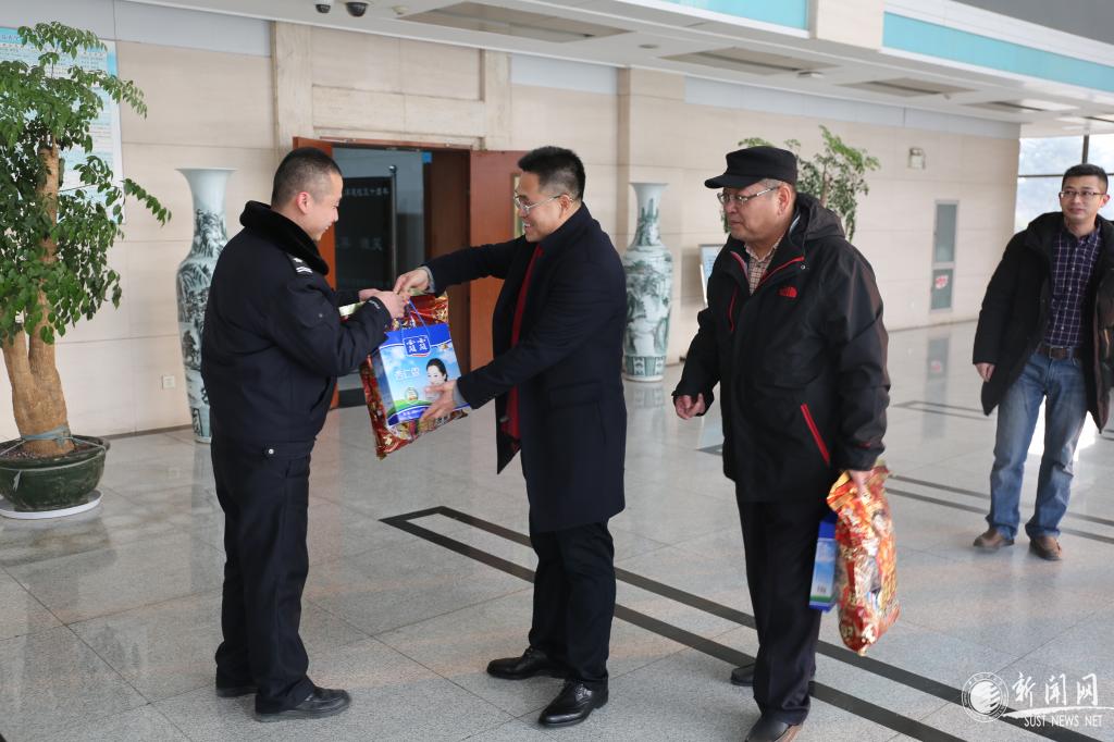 上午9時(shí)許,馬建中一行先后來到逸夫樓門衛(wèi)、信息與網(wǎng)絡(luò)管理中心、配電主控室、圖書館、熱交換站、小北門門衛(wèi)室、校園車隊(duì)、學(xué)生公寓管理中心、馨園餐廳等處,親切看望和慰問了春節(jié)期間依然堅(jiān)守在工作一線的230余名工作人員。每到一處,馬建中一行都噓寒問暖,與值班人員親切交談,關(guān)切詢問他們的工作生活情況,代表學(xué)校向他們致以新春的問候和誠摯的感謝,希望大家2018年生活美滿、工作順利,并勉勵(lì)大家繼續(xù)做好校區(qū)的各項(xiàng)安全管理和后勤保障工作,確保全校教職工度過一個(gè)快樂、祥和的春節(jié)。一句句暖心的話語鼓舞人心、催人奮進(jìn),值班人員紛紛表示,要在春節(jié)期間服好務(wù)、站好崗,確保各項(xiàng)工作不斷線。