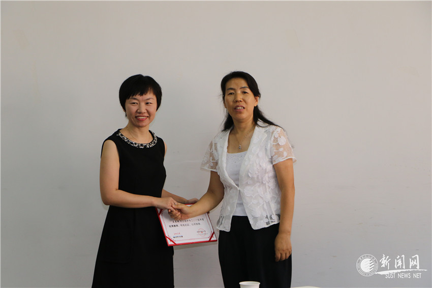 黨委副書記楊欲曉(右一)為思政部獲獎(jiǎng)教師頒發(fā)榮譽(yù)證書