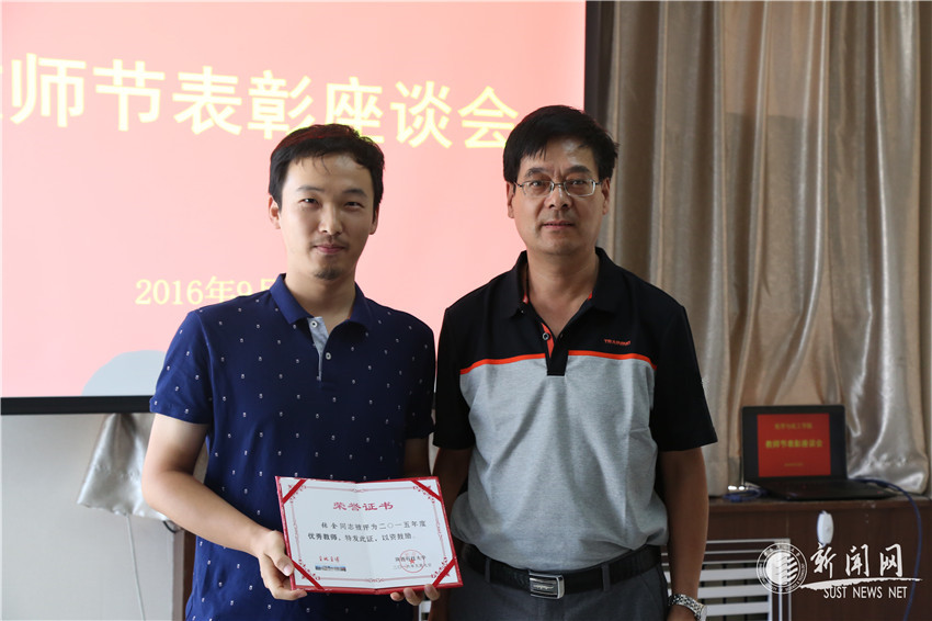座談會(huì)上,姚書志首先關(guān)切地一一詢問與會(huì)青年教師的研究方向、入校后所在團(tuán)隊(duì)和工作情況,為輕工學(xué)院從教滿30年榮譽(yù)教師羅曉民、劉筱霞以及2015年度校級(jí)“優(yōu)秀教師”孫德強(qiáng)、“先進(jìn)工作者”王佳瑜頒發(fā)了榮譽(yù)證書并合影留念。