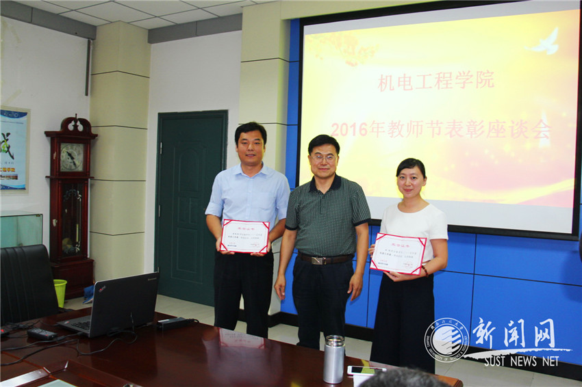副校長(zhǎng)馬建中(左二)為機(jī)電學(xué)院獲獎(jiǎng)教師頒發(fā)榮譽(yù)證書