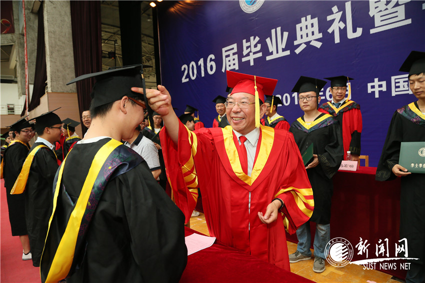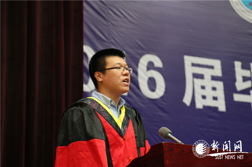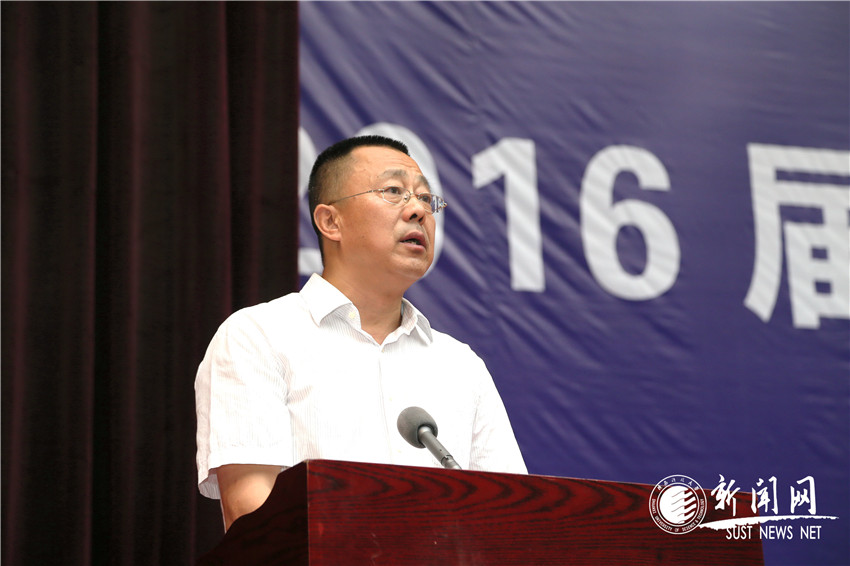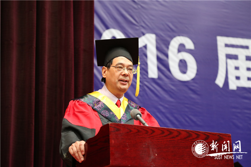 校長姚書志以“努力做一個高尚純粹的人”為題致辭,為畢業(yè)生獻上誠摯的祝賀和祝福。他深情回顧了2016屆畢業(yè)生作為建校歷史上人數(shù)最多的一級大學生與學校共同成長的點點滴滴,感謝同學們的包容、理解和支持,并為能夠與同學們一起與陜西科技大學攜手前行感到驕傲和自豪!