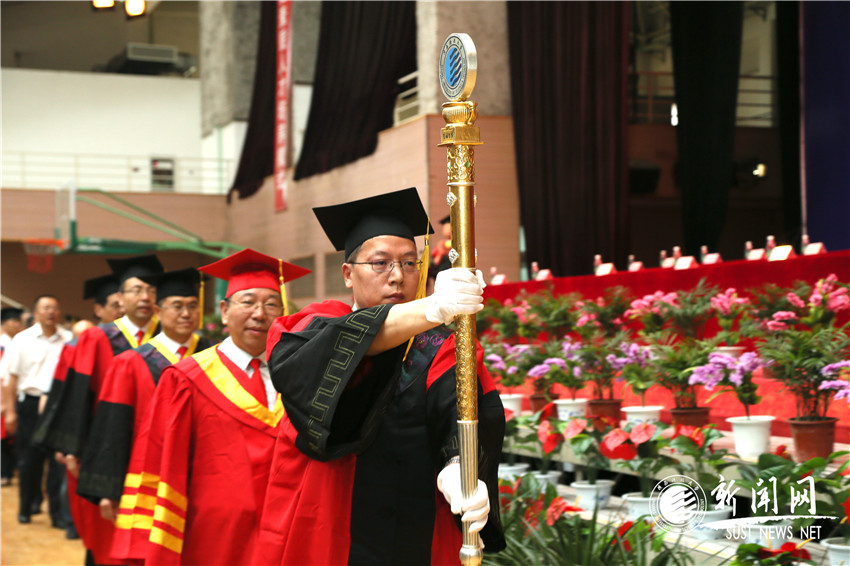 伴著激昂的旋律,校領(lǐng)導及學位評定委員會委員在陜西科技大學權(quán)杖的引領(lǐng)下緩步邁入文體館,拉開了2016屆畢業(yè)典禮暨2016年學位授予儀式的序幕。