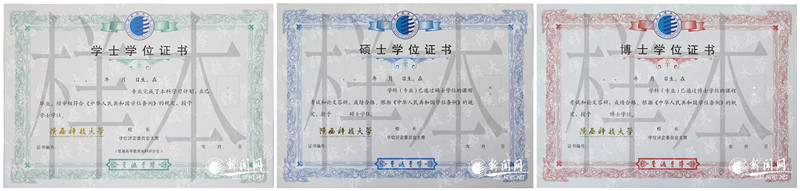 獲得博士、碩士、學士學位的畢業(yè)生代表一一登上主禮臺,接受校領(lǐng)導撥穗并頒授學位證書。值得一提的是,這些學位證書一改往年全國統(tǒng)一的“大眾臉”,其上印制有“青出于藍勝于藍”隱喻的?;蘸汀爸琳\至博”校訓,獨具我校特色。2016屆畢業(yè)生在收獲這一小小驚喜的同時,也成為我校個性化學位證書的首批使用者。