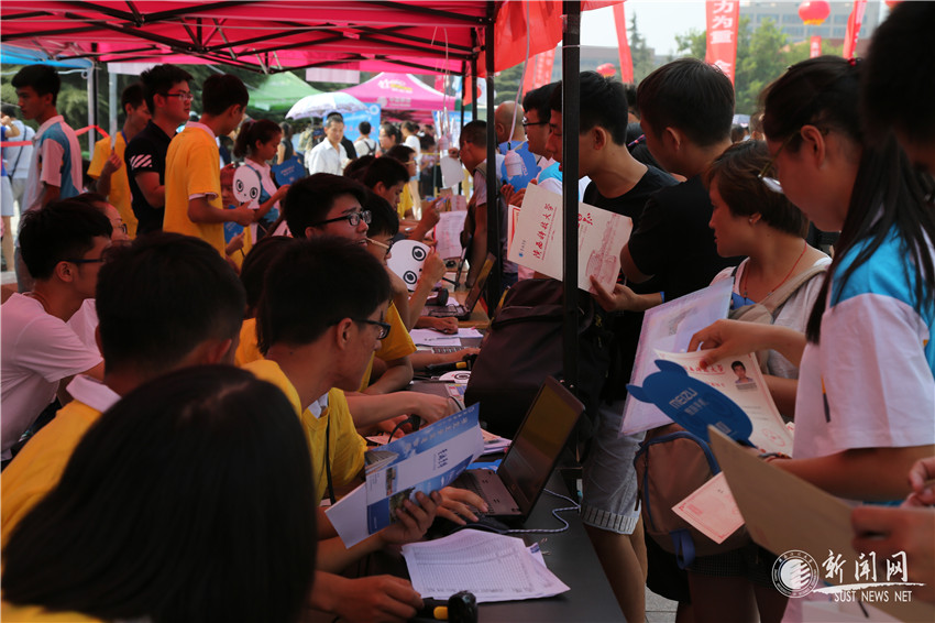 今年的迎新由于提前開通了“陜西科技大學(xué)迎新網(wǎng)”,啟動數(shù)字迎新,新生到校前通過網(wǎng)上可提前選取宿舍、軍訓(xùn)服、是否接站等事宜,這給現(xiàn)場報到提供了很大的方便。據(jù)悉,從8月11日開始共有2800名新生通過網(wǎng)上平臺繳費(fèi),到目前為止共有1276名新生和1838位學(xué)生家長提前預(yù)約火車站接車,而在8月19日預(yù)定宿舍通道關(guān)閉時,有超過80%的新同學(xué)在網(wǎng)上已經(jīng)選好自己的宿舍,對于由于種種原因而沒有預(yù)定的同學(xué),學(xué)校也給予了方便,在學(xué)院報名點(diǎn)掃碼就可以得知自己的住宿信息。除此而外,今年迎新中,本科生實(shí)現(xiàn)“全綠色通道”,經(jīng)濟(jì)困難學(xué)生可以先報到上學(xué),無須現(xiàn)場提供相關(guān)材料證明。