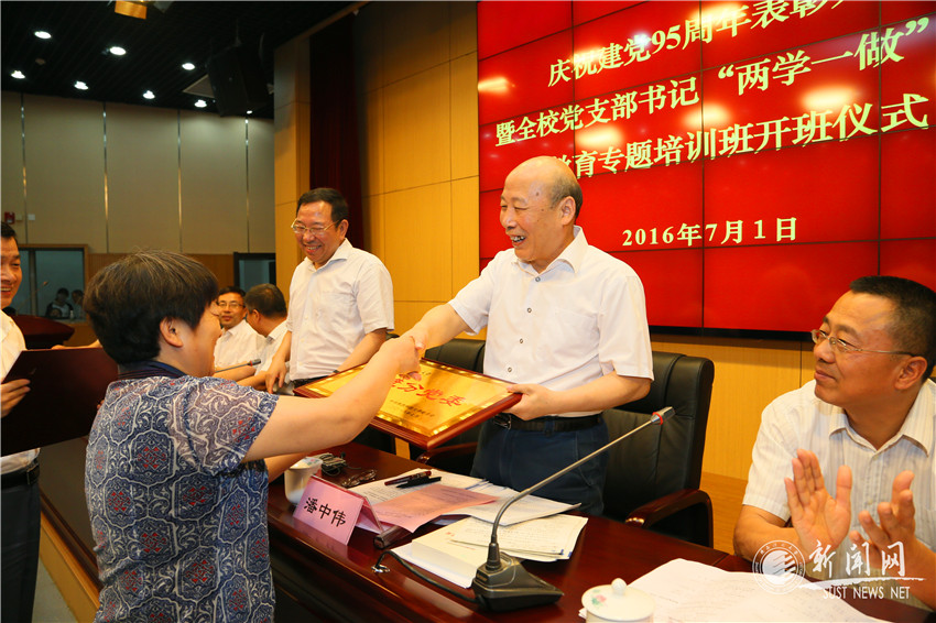 為慶祝建黨95周年,持續(xù)推進“兩學一做”學習教育,我校于7月1日在圖書館學術報告廳隆重舉行慶祝建黨95周年表彰大會,黨委書記潘中偉在全校黨支部書記“兩學一做”學習教育專題培訓班開班儀式上講授專題黨課。黨委副書記、校長姚書志主持表彰大會及開班儀式。
