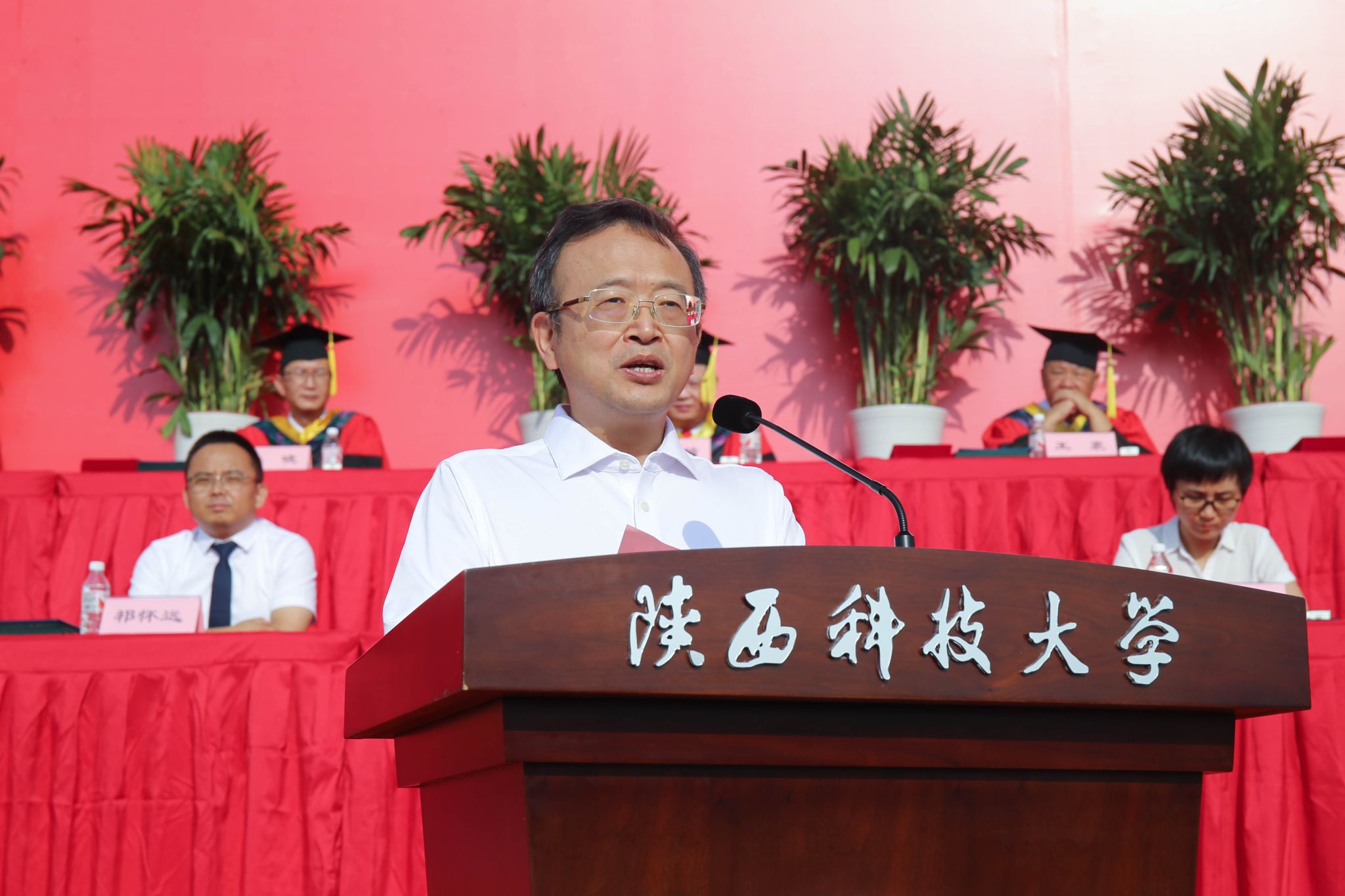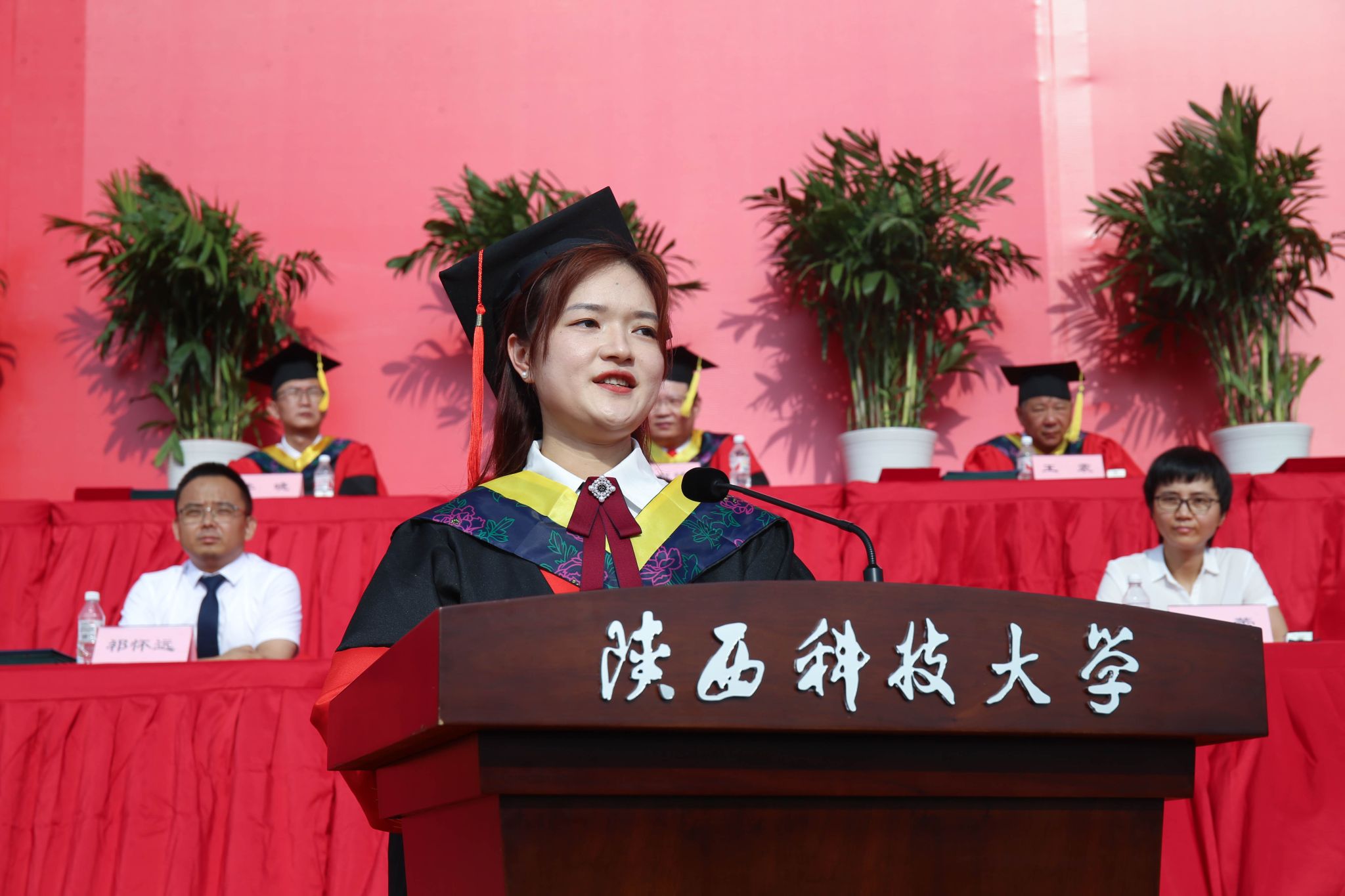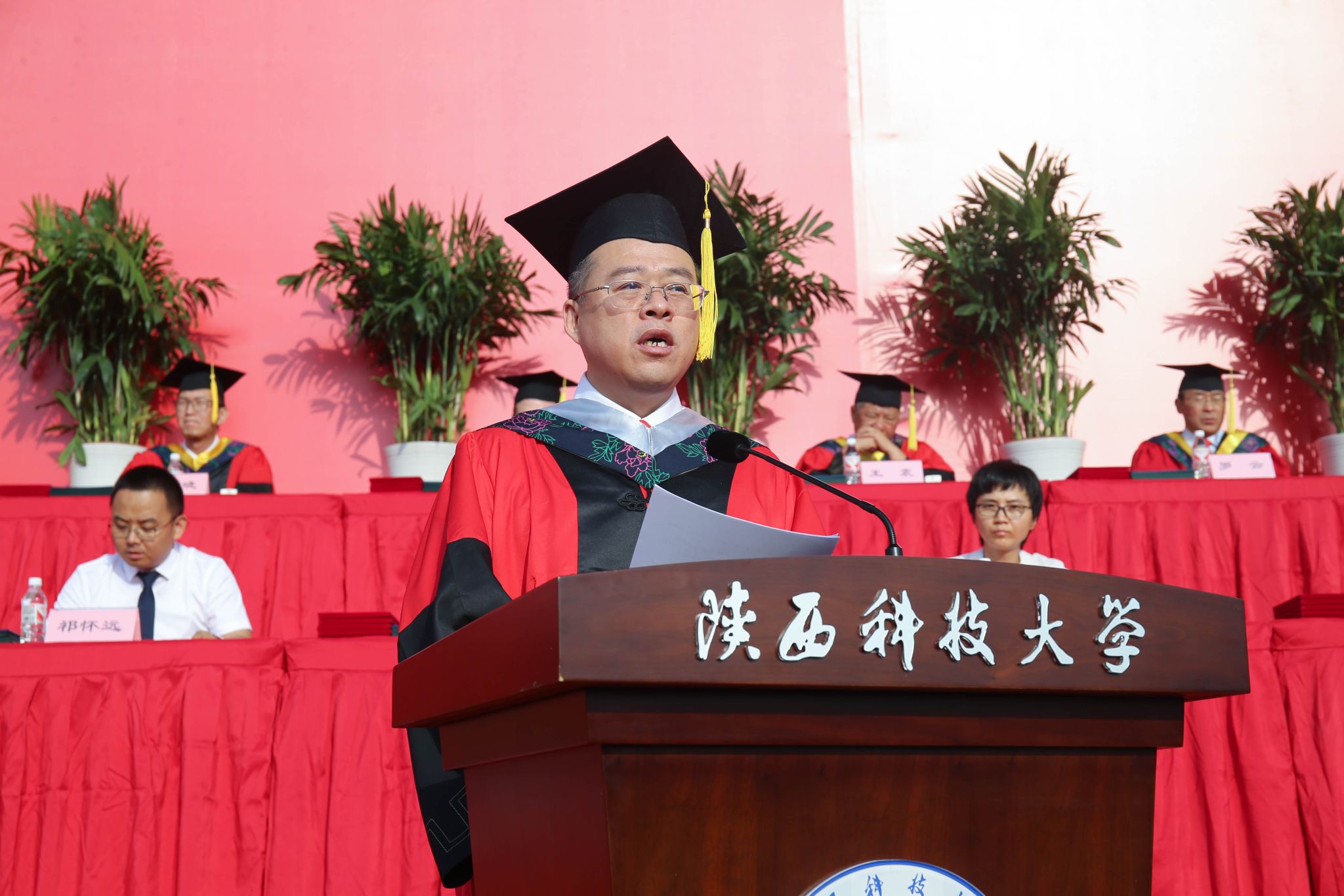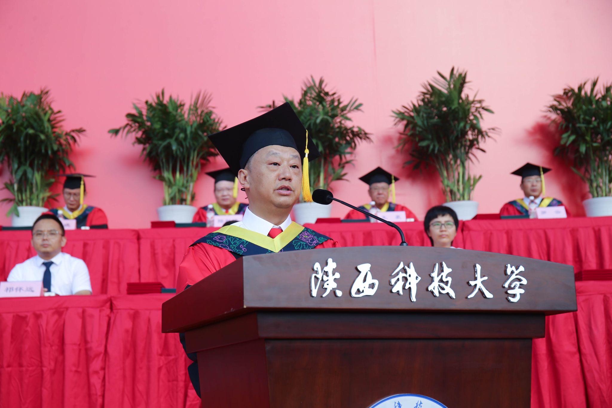 臨別之際,校長李志健以“收獲、機(jī)遇、未來”為題深情寄語畢業(yè)生。他飽含深情地回顧了同學(xué)們與學(xué)校同向同行、砥礪奮斗的成長歷程,充分肯定了同學(xué)們在學(xué)校“三三三”人才培養(yǎng)輸出理念的指引下,通過企事業(yè)單位就業(yè)、學(xué)習(xí)深造、奔赴基層建功立業(yè)、投筆從戎等多種形式勇?lián)刎?zé)、成就自我的蝶變成長。他表示,學(xué)校軟科排名從同學(xué)們?nèi)胄r(shí)的161位躍升到今年大家畢業(yè)時(shí)的124位,這是所有陜科大人求實(shí)創(chuàng)新、自強(qiáng)拼搏、奉獻(xiàn)社會(huì)的精神與行動(dòng)映照!