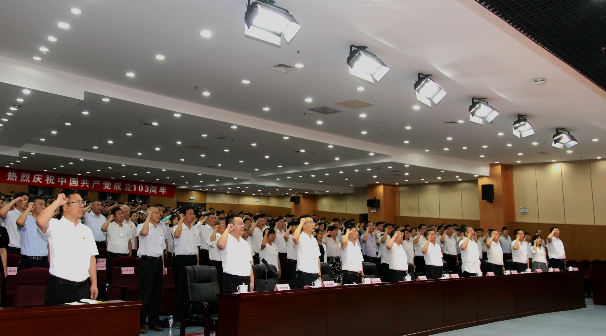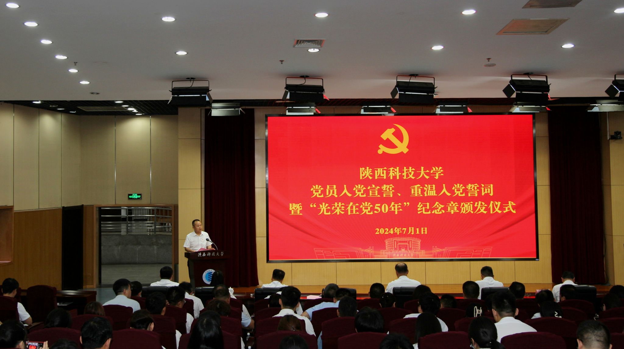 7月1日上午,在中國共產(chǎn)黨成立103周年之際,為回顧中國共產(chǎn)黨的光輝奮斗歷程,增強廣大黨員的榮譽感、歸屬感、使命感,激勵全校師生黨員堅定理想信念、錘煉黨性修養(yǎng)、弘揚優(yōu)良作風,進一步推動黨紀學(xué)習(xí)教育走深走實,凝聚起推動學(xué)校高質(zhì)量發(fā)展的強大力量,學(xué)校在圖書館學(xué)術(shù)報告廳舉行黨員入黨宣誓、重溫入黨誓詞暨“光榮在黨50年” 紀念章頒發(fā)儀式。校黨委副書記李學(xué)軍主持會議。