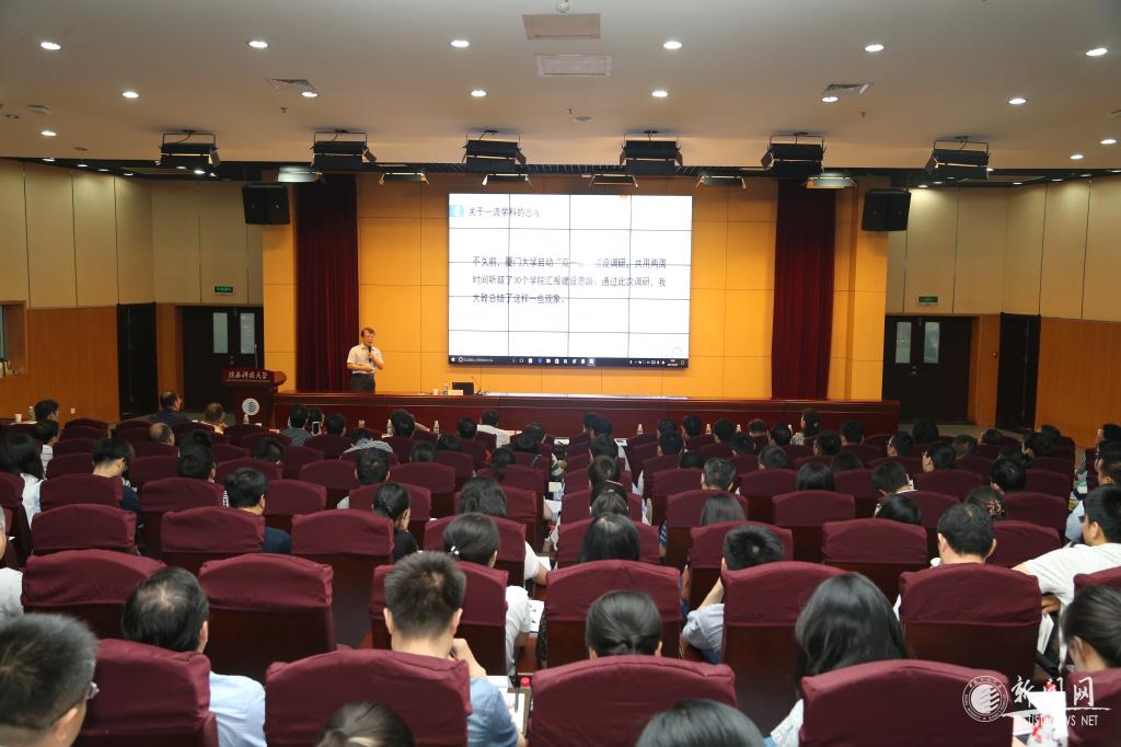 我校人事處、學(xué)科辦、教務(wù)處、研究生院、科技處、發(fā)展規(guī)劃處相關(guān)負(fù)責(zé)人,各學(xué)院班子成員、教育學(xué)科教師,以及本期培訓(xùn)班參訓(xùn)教師共同聆聽了報告。據(jù)悉,本次報告會為我校第五期骨干教師高級研修班的開班報告。5月31日至6月2日,廈門大學(xué)專家團(tuán)將在我校舉行7場培訓(xùn)報告,來自西北高校教師發(fā)展中心聯(lián)盟成員單位的省內(nèi)外29所高校的140余名一線教師參加本期培訓(xùn)。