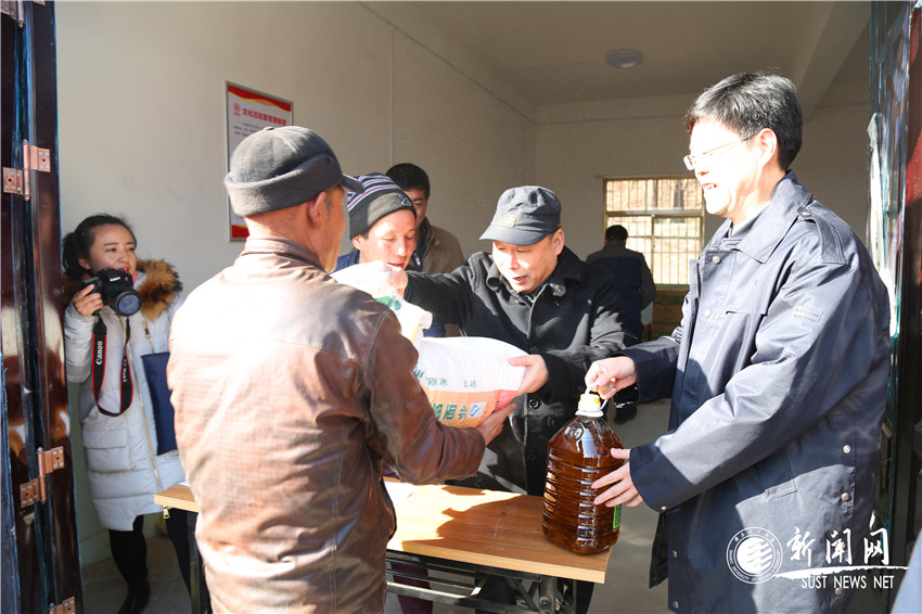 “感謝黨、感謝學(xué)校對我們的關(guān)心!”接過大米、面粉、食用油和大紅的福字和春聯(lián),王石凹村民張栓娃、吳文學(xué)等人無比感動地說。頂著凜冽的寒風(fēng),潘中偉一行為全村貧困戶集中發(fā)放了慰問品,又分別到兩戶重點(diǎn)幫扶對象家中走訪慰問,了解他們的日常生活情況和身體狀況,鼓勵他們在新的一年里要堅(jiān)定信心、戰(zhàn)勝困難、積極生活。