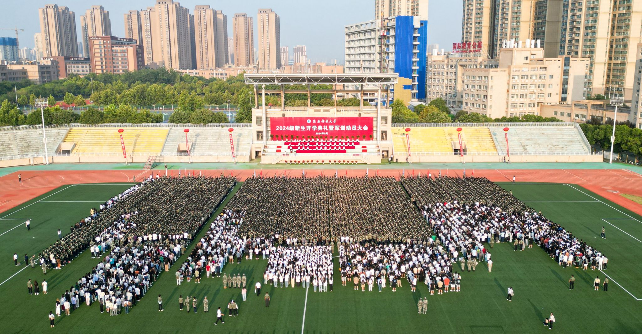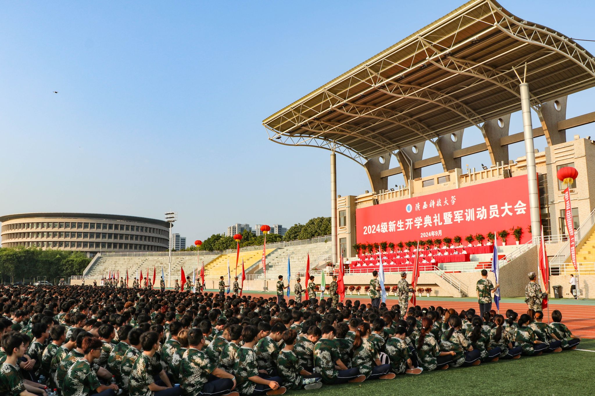 9月4日上午,我校2024級新生開學典禮暨軍訓動員大會在標準田徑場舉行。校黨委書記樊建武,校長李志健,校黨委副書記王道安,校黨委副書記、紀委書記、監(jiān)察專員羅瑩,校黨委副書記李學軍,副校長黃劍鋒、蒲永平、費貴強、黃海峙、陸趙情及各部門、各學院主要負責人、師生代表出席典禮。樊建武為2024年軍訓團頒授軍訓團團旗,李志健發(fā)表講話。校黨委副書記郭強主持典禮。