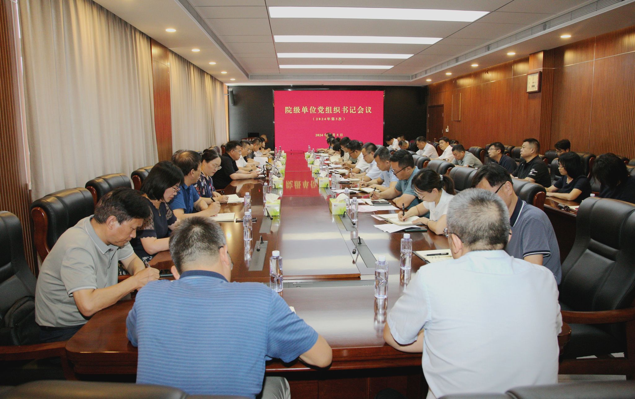 9月5日下午,學(xué)校召開2024年第3次院級單位黨組織書記會(huì)議。校黨委書記樊建武主持會(huì)議并講話,校黨委副書記王道安、郭強(qiáng)、李學(xué)軍出席會(huì)議并就分管領(lǐng)域重點(diǎn)工作進(jìn)行安排部署。學(xué)校黨群部門負(fù)責(zé)同志分別回顧總結(jié)上半年工作,通報(bào)下半年工作要點(diǎn)。各院級單位黨組織書記參加會(huì)議。