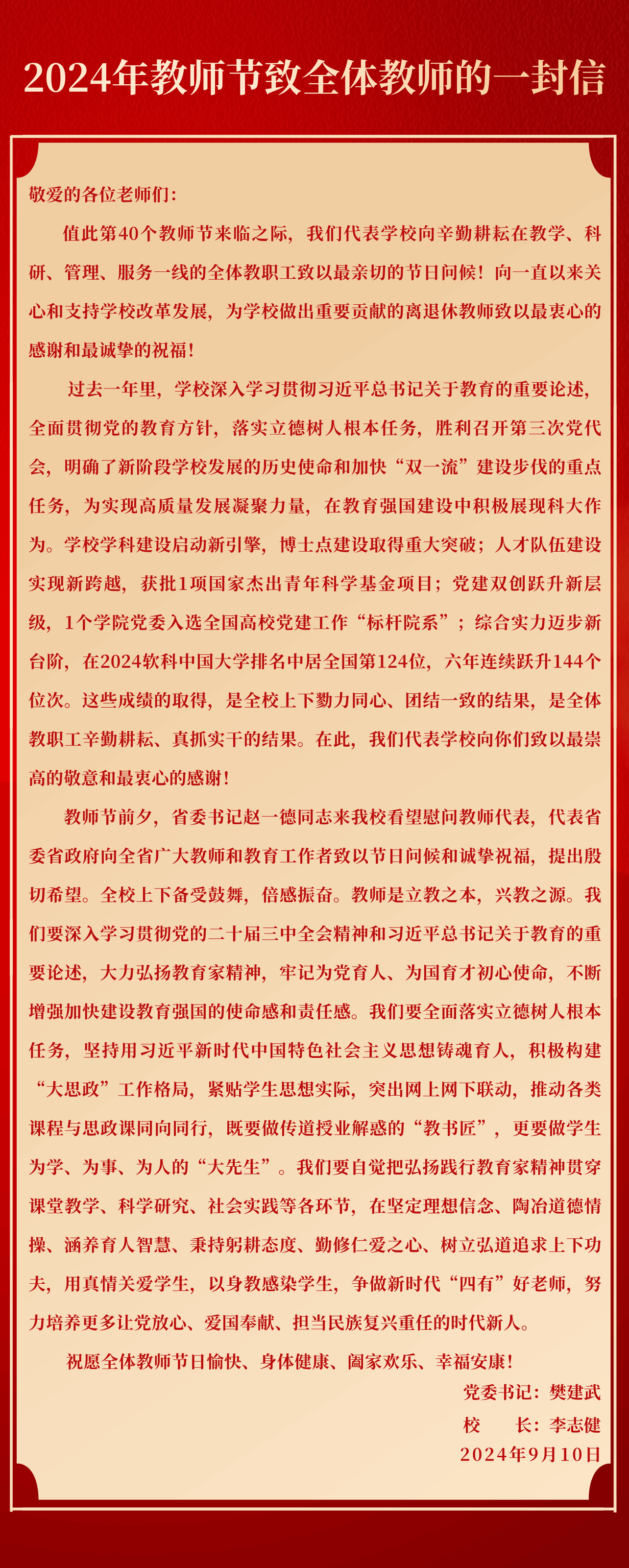 2024年教師節(jié)致全體教師的一封信