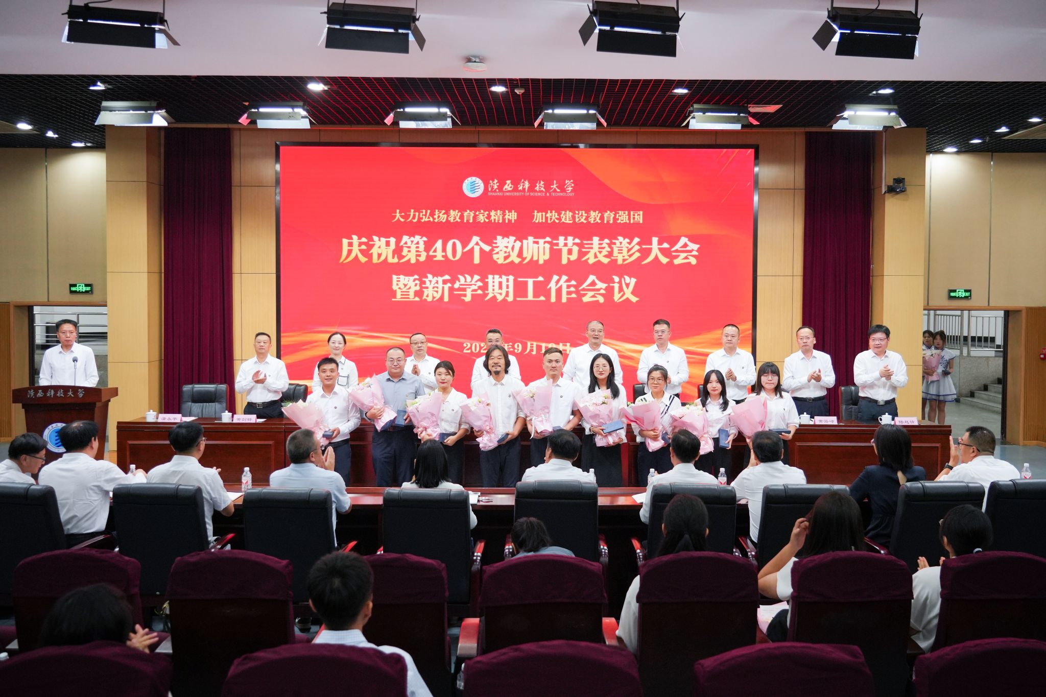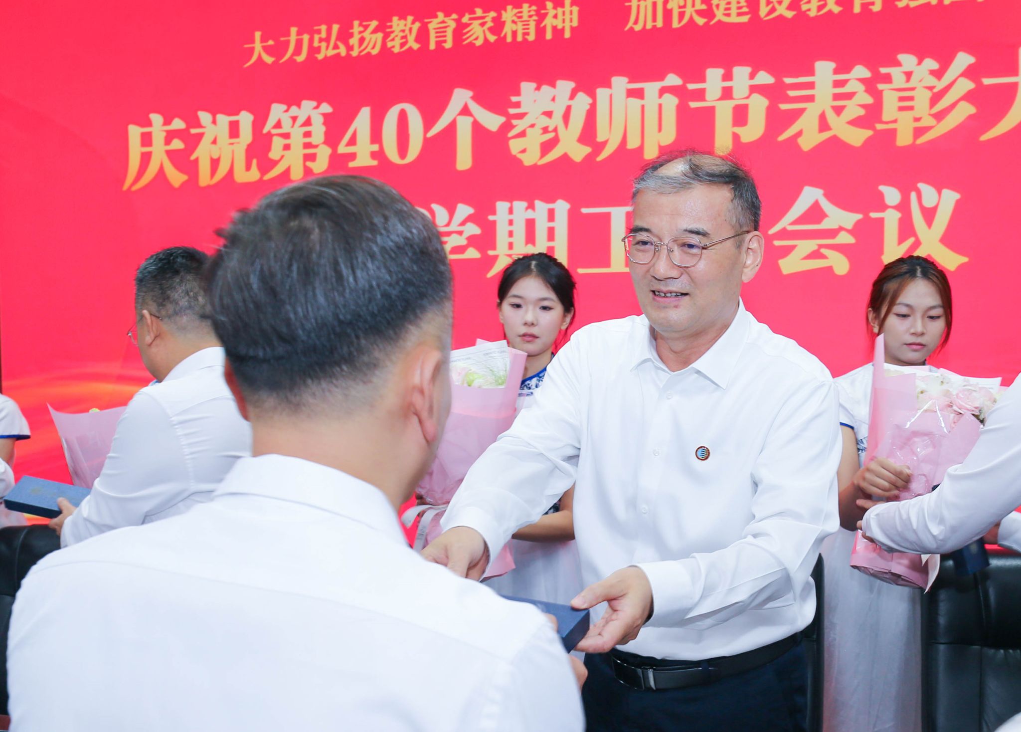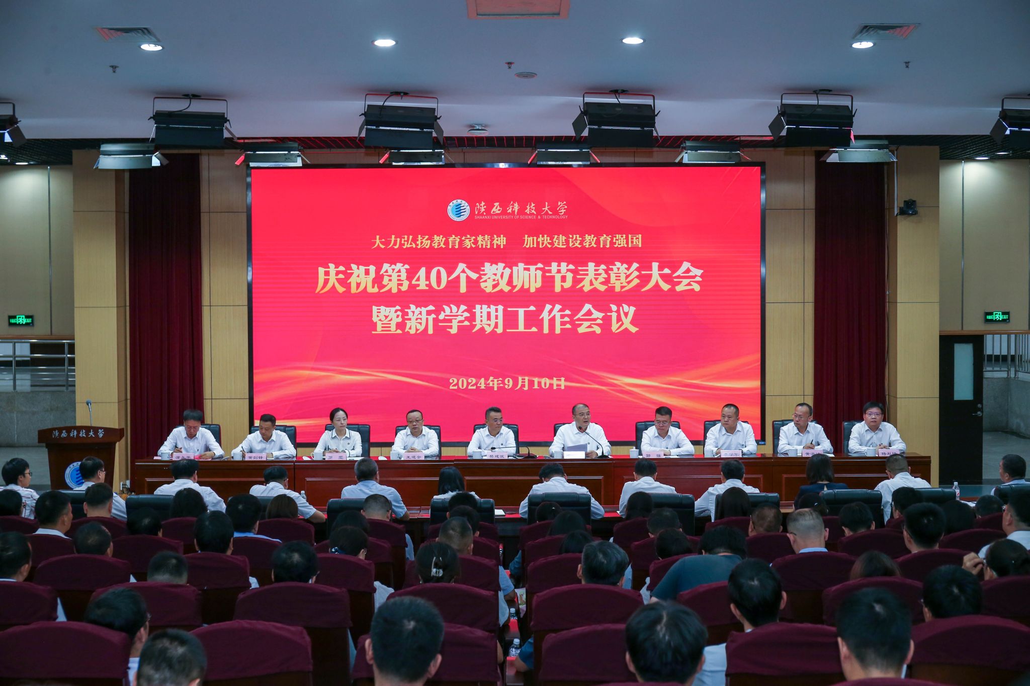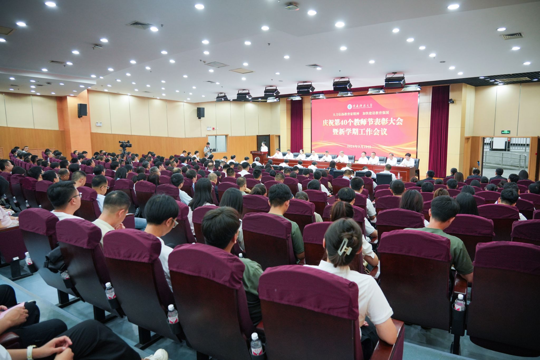 9月10日下午,我校召開慶祝第40個教師節(jié)表彰大會暨新學(xué)期工作會議,認(rèn)真學(xué)習(xí)領(lǐng)會習(xí)近平總書記關(guān)于教育的重要論述和全國教育大會精神,深入學(xué)習(xí)宣傳貫徹黨的二十屆三中全會精神,推進(jìn)黨紀(jì)學(xué)習(xí)教育常態(tài)化長效化,表彰2023至2024學(xué)年做出突出貢獻(xiàn)的優(yōu)秀教師,對標(biāo)學(xué)校第三次黨代會安排部署,總結(jié)回顧上半年工作、安排部署下半年重點(diǎn)任務(wù)。校黨委書記樊建武、校長李志健出席并講話,全體在家校領(lǐng)導(dǎo)出席會議。會議由副校長蒲永平主持。