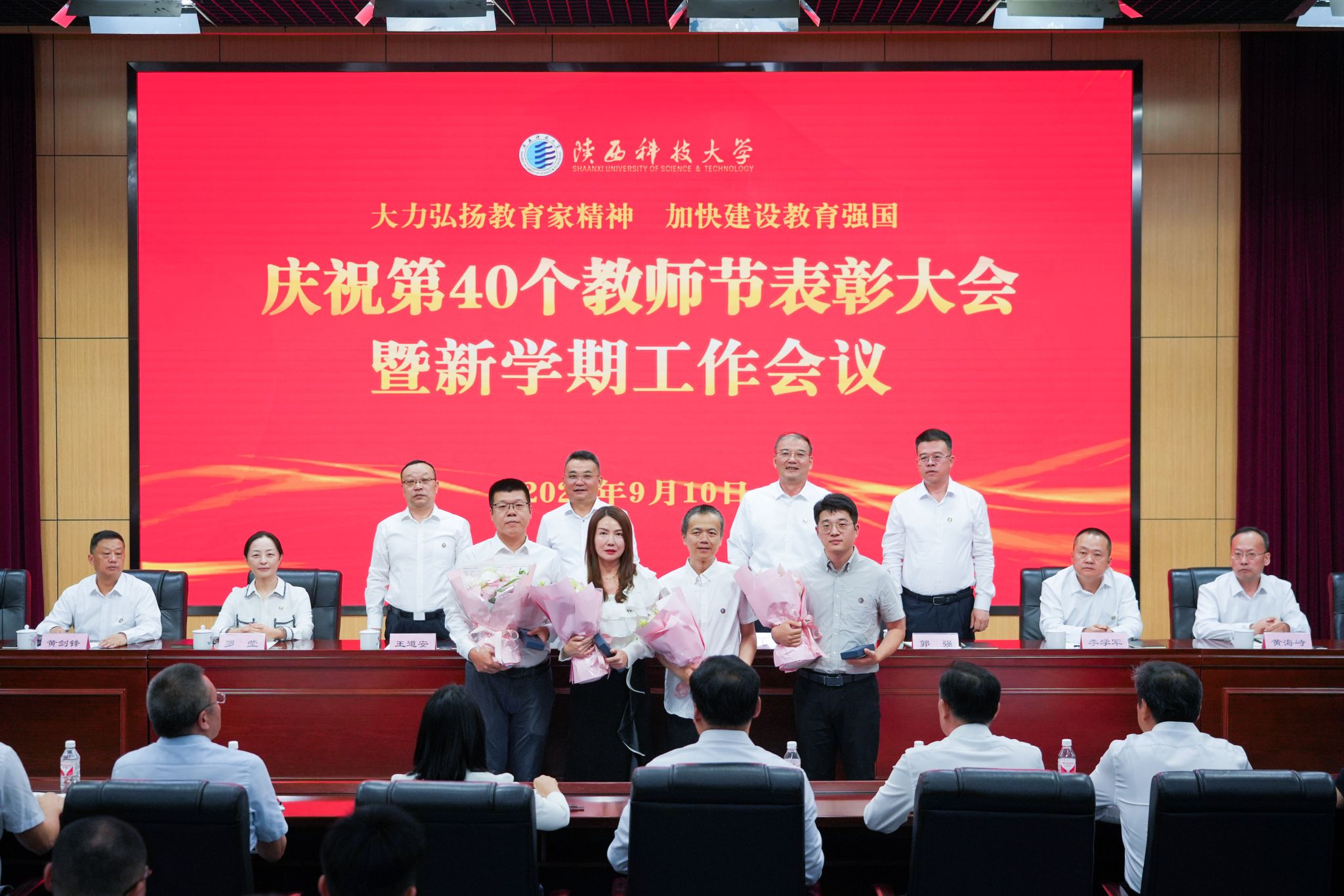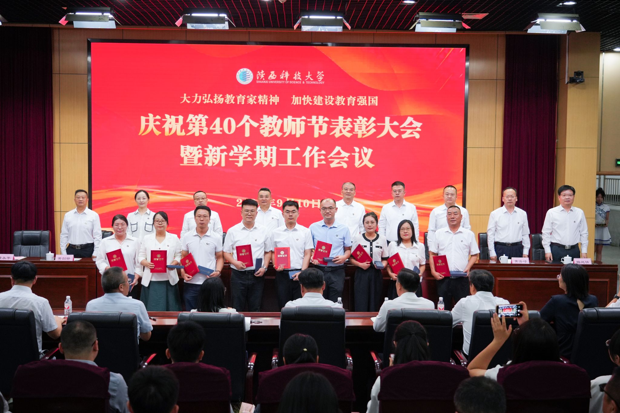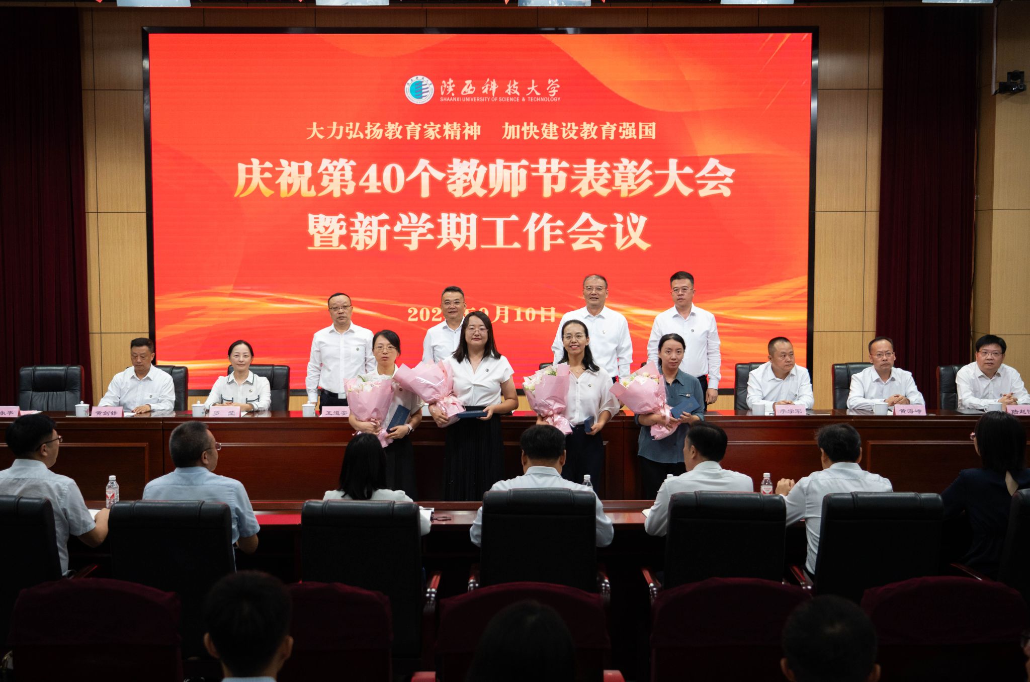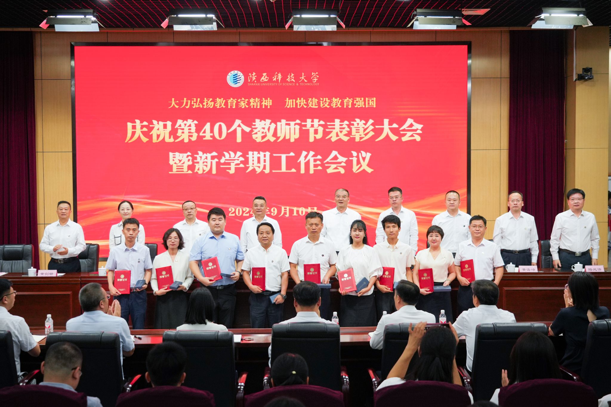 9月10日下午,我校召開慶祝第40個教師節(jié)表彰大會暨新學(xué)期工作會議,認(rèn)真學(xué)習(xí)領(lǐng)會習(xí)近平總書記關(guān)于教育的重要論述和全國教育大會精神,深入學(xué)習(xí)宣傳貫徹黨的二十屆三中全會精神,推進(jìn)黨紀(jì)學(xué)習(xí)教育常態(tài)化長效化,表彰2023至2024學(xué)年做出突出貢獻(xiàn)的優(yōu)秀教師,對標(biāo)學(xué)校第三次黨代會安排部署,總結(jié)回顧上半年工作、安排部署下半年重點(diǎn)任務(wù)。校黨委書記樊建武、校長李志健出席并講話,全體在家校領(lǐng)導(dǎo)出席會議。會議由副校長蒲永平主持。