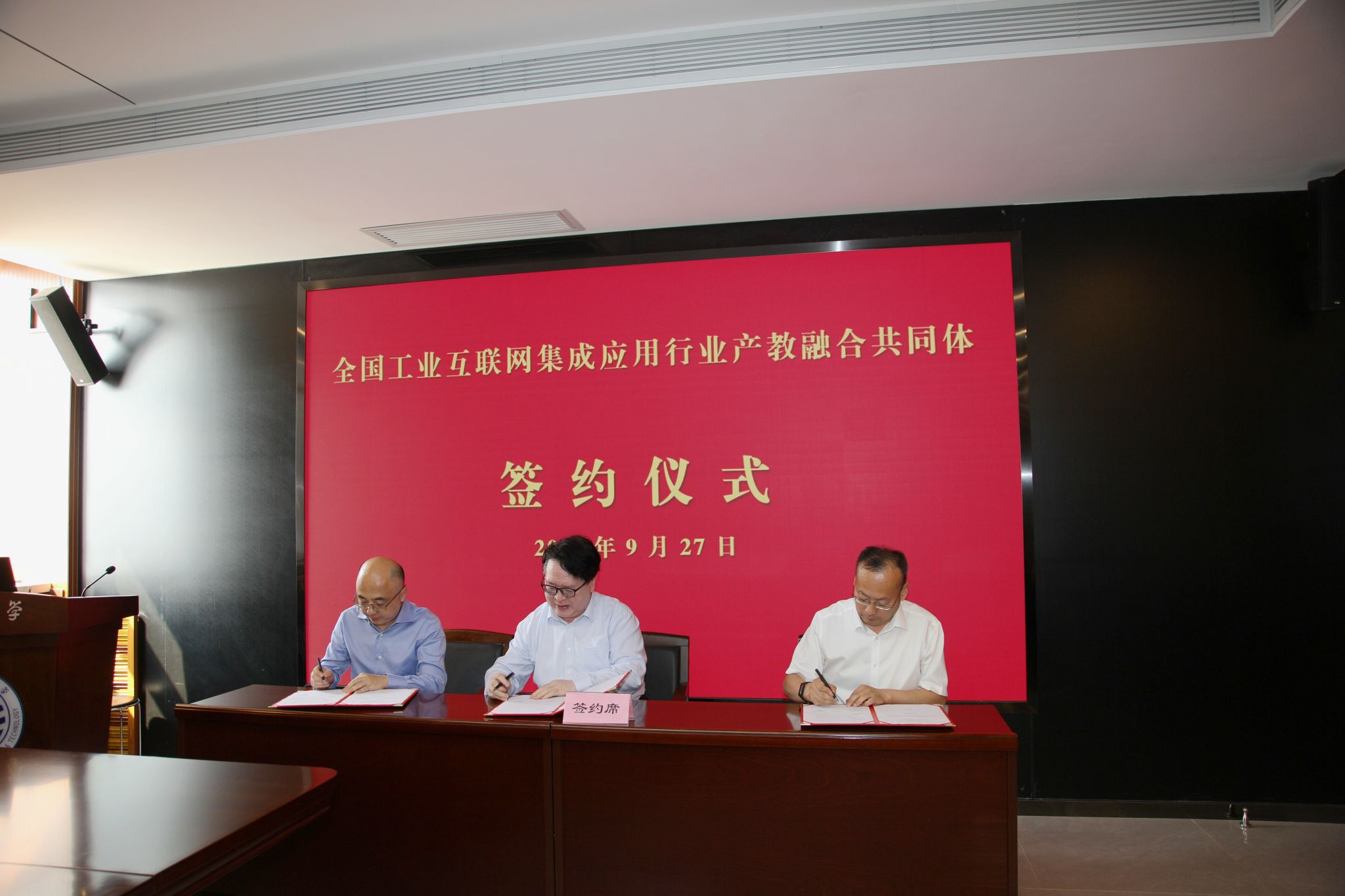 黃海峙代表學(xué)校與北京華航唯實(shí)工業(yè)軟件科技有限公司、陜西國(guó)防工業(yè)職業(yè)技術(shù)學(xué)院簽訂了全國(guó)工業(yè)互聯(lián)網(wǎng)集成應(yīng)用行業(yè)產(chǎn)教融合共同體合作備忘錄。