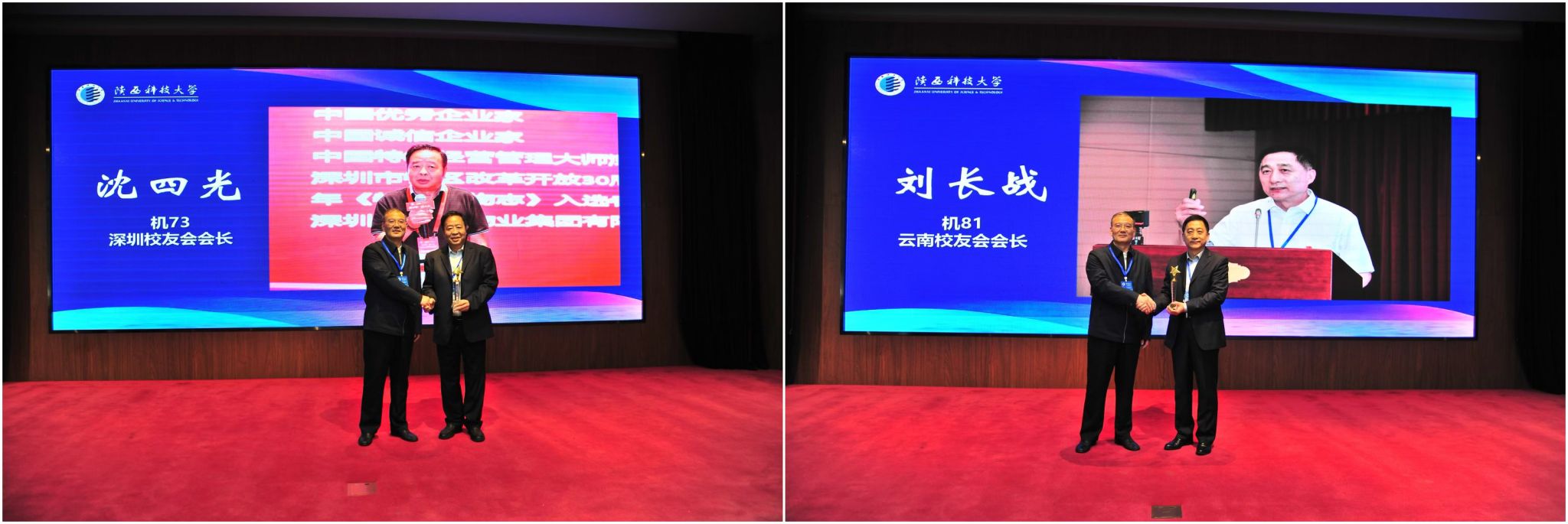 大會還進(jìn)行了校友工作表彰。李志健為深圳校友會會長沈四光(機(jī)73)、云南校友會會長劉長戰(zhàn)(機(jī)81)頒發(fā)“校友工作杰出貢獻(xiàn)獎(jiǎng)”。