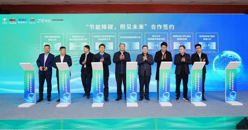 光源與照明研究院代表學校與中國電信陜西分公司、陜西電子信息集團光電科技有限公司、西北大學、陜西交控運營管理有限公司、陜西城市投資運營集團有限公司、中國華能陜西發(fā)電有限公司等單位,共同發(fā)起“節(jié)能降碳,照見未來”倡議,并在“數(shù)智化賦能智慧城市建設(shè)”合作協(xié)議上簽約。李志健與陜西省、西安市政府相關(guān)領(lǐng)導(dǎo)共同見證簽約儀式。