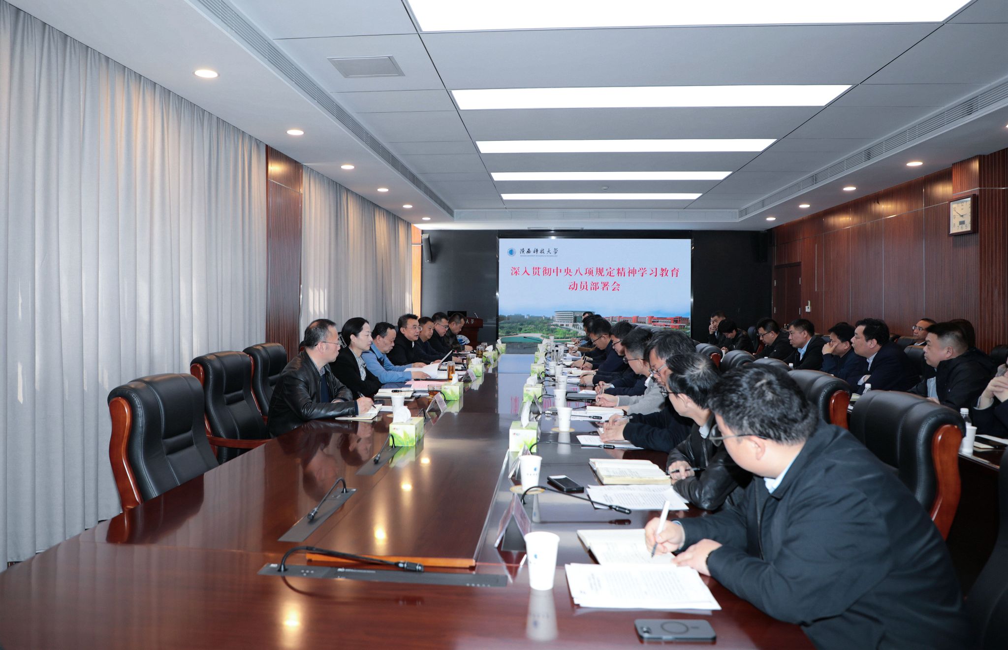 3月21日上午,學校黨委會(擴大)會議暨黨的建設工作領導小組會議深入學習貫徹習近平總書記關于加強黨的作風建設的重要論述、關于深入貫徹中央八項規(guī)定精神學習教育的重要講話和重要指示精神,傳達學習中央、省委黨的建設工作領導小組會議精神和《實施方案》要求,審議通過《中共陜西科技大學委員會關于開展深入貫徹中央八項規(guī)定精神學習教育的實施方案》。下午,學校召開動員部署會議,正式啟動全校深入貫徹中央八項規(guī)定精神學習教育。黨委書記樊建武出席并講話,黨委副書記、校長黃劍鋒主持會議。學校黨的建設工作領導小組成員、各黨群部門負責人和院級單位黨組織書記參加會議。