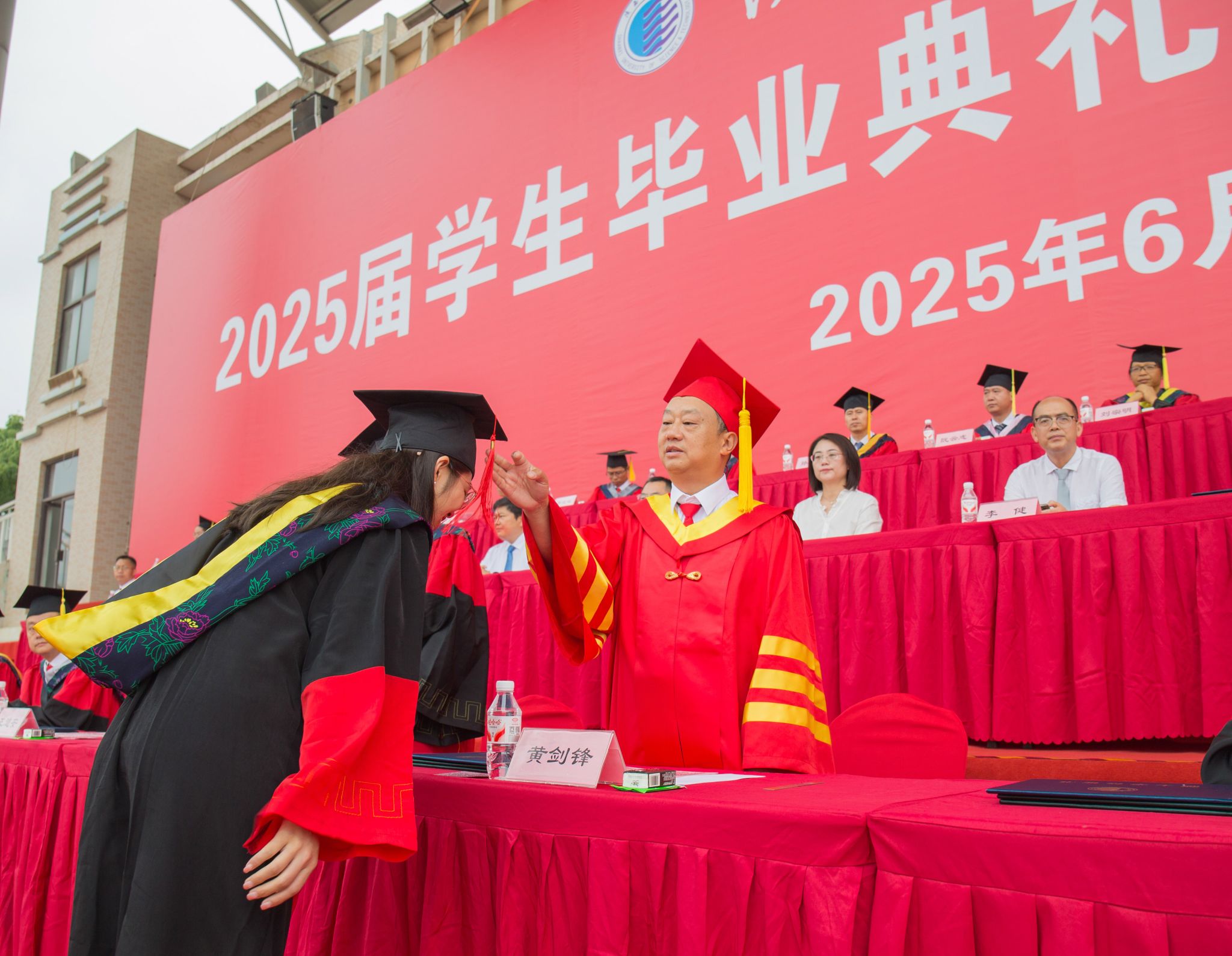 在畢業(yè)生即將開啟新征程的重要時(shí)刻,黃劍鋒對2025屆全體畢業(yè)生提出三點(diǎn)期許:一是永葆家國情懷,在復(fù)興偉業(yè)中錨定青春航向。希望同學(xué)們聽黨話、跟黨走、立大志,奮斗在科技攻關(guān)的前沿陣地、在鄉(xiāng)村振興的廣闊田野、在基層治理的一線崗位,學(xué)好必修課,練好基本功,服務(wù)“國之大者”。二是勤于修身律己,在品格涵養(yǎng)中筑牢人生根基。希望同學(xué)們立德修身、正心明志,嚴(yán)于律己、慎獨(dú)慎微,堅(jiān)持鍛煉、強(qiáng)健體魄,塑造正直誠信、堅(jiān)韌不拔、寬容仁厚的品格,做自己人生的主人公。三是堅(jiān)持守正創(chuàng)新,在變革浪潮中錘煉過硬本領(lǐng)。希望同學(xué)們永葆求知熱忱,矢志創(chuàng)新發(fā)展,將終身學(xué)習(xí)視為一種習(xí)慣和核心競爭力,以“敢為天下先”的氣魄在前沿科技、未來領(lǐng)域探索未知,以“逢山開路,遇水架橋”的決心在時(shí)代變革中乘風(fēng)破浪。