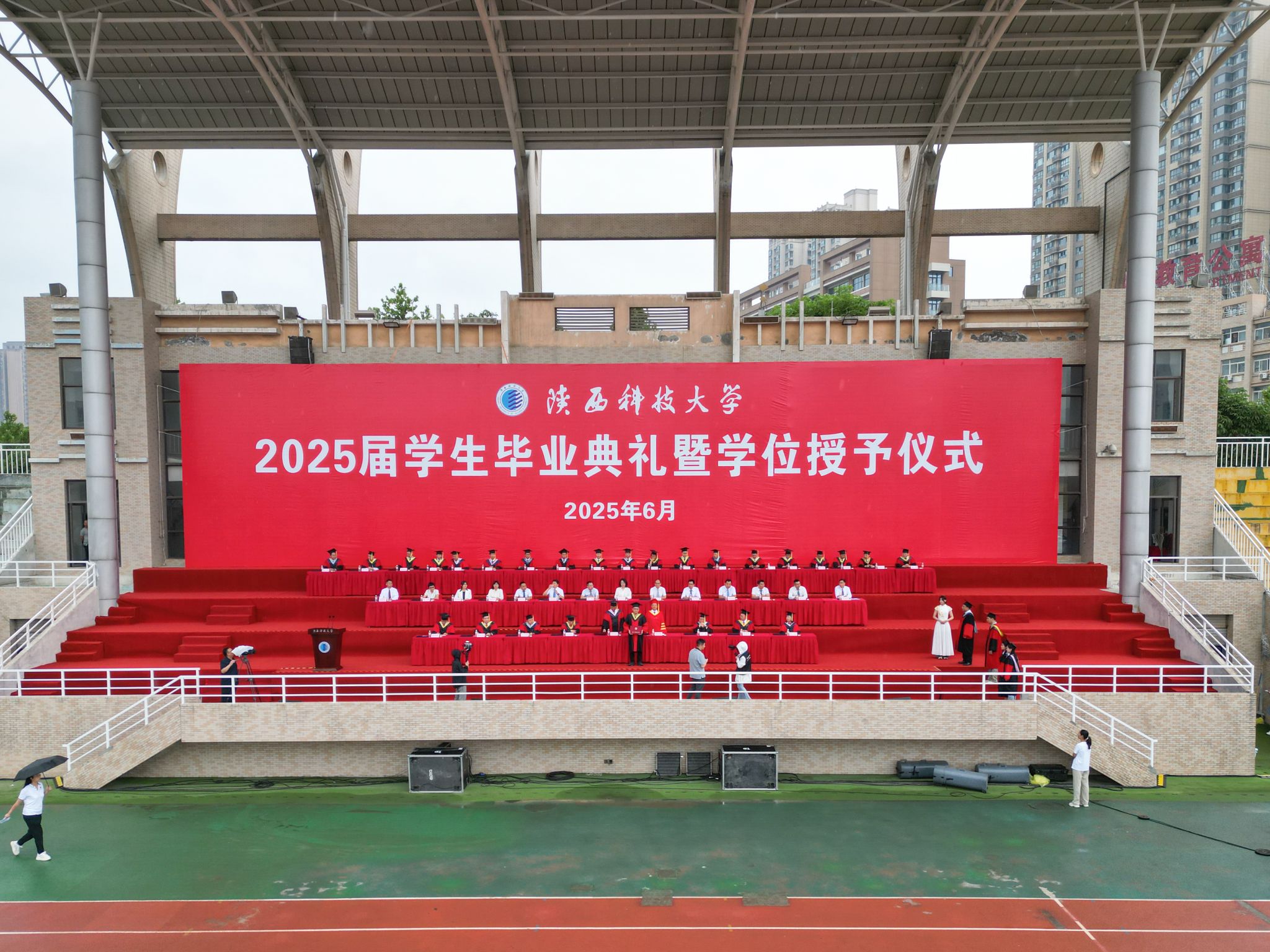 本屆畢業(yè)典禮通過“起點(diǎn)新聞、陜西科技大學(xué)官方微博、微信、抖音、嗶哩嗶哩視頻網(wǎng)站”等平臺(tái)進(jìn)行同步直播。2025屆畢業(yè)生親友、校內(nèi)外師生、海內(nèi)外校友、以及關(guān)心支持學(xué)校事業(yè)發(fā)展的各界人士,通過線上直播方式收看畢業(yè)典禮。