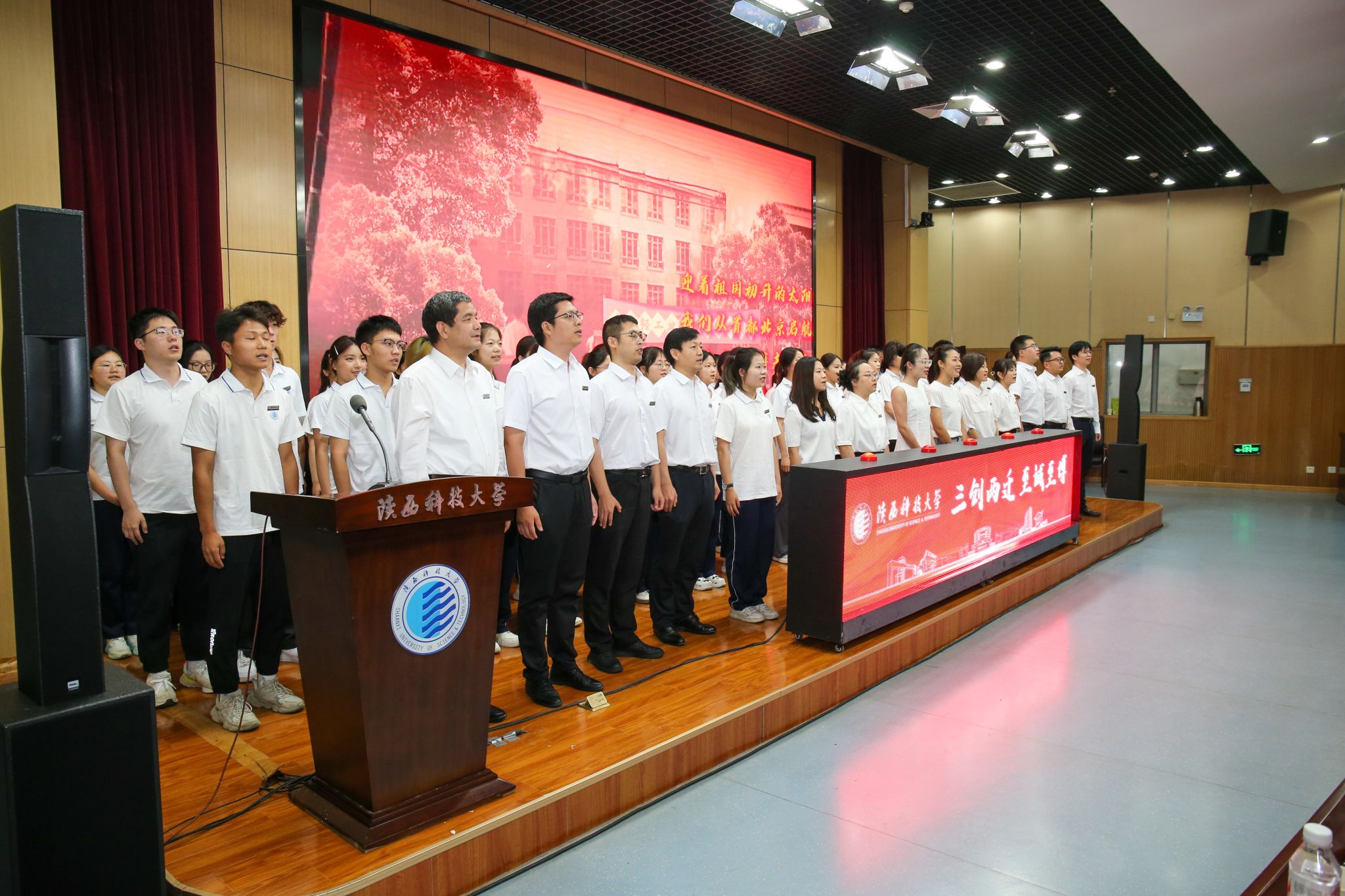 6月26日,慶祝陜西科技大學(xué)建校67周年暨校歌《遠(yuǎn)航》(重制版)發(fā)布儀式在圖書館學(xué)術(shù)報(bào)告廳舉行,師生代表、離退休教師及校友代表等500余人齊聚一堂,用歌聲為校慶獻(xiàn)禮。儀式由黨委宣傳部部長(zhǎng)李萌主持。