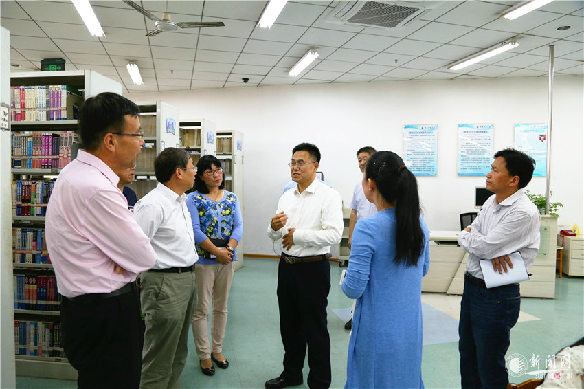 馬建中一行察看了教育部科技查新工作站、電子閱覽室、科技圖書閱覽室、檔案館文獻庫,詳細了解相關(guān)服務工作開展情況。