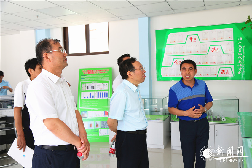 姚書(shū)志和李育江為我校技術(shù)轉(zhuǎn)移中心和入駐團(tuán)隊(duì)陜西科技大學(xué)能源研究院揭牌并參觀了我校首批入駐團(tuán)隊(duì)的辦公場(chǎng)所。