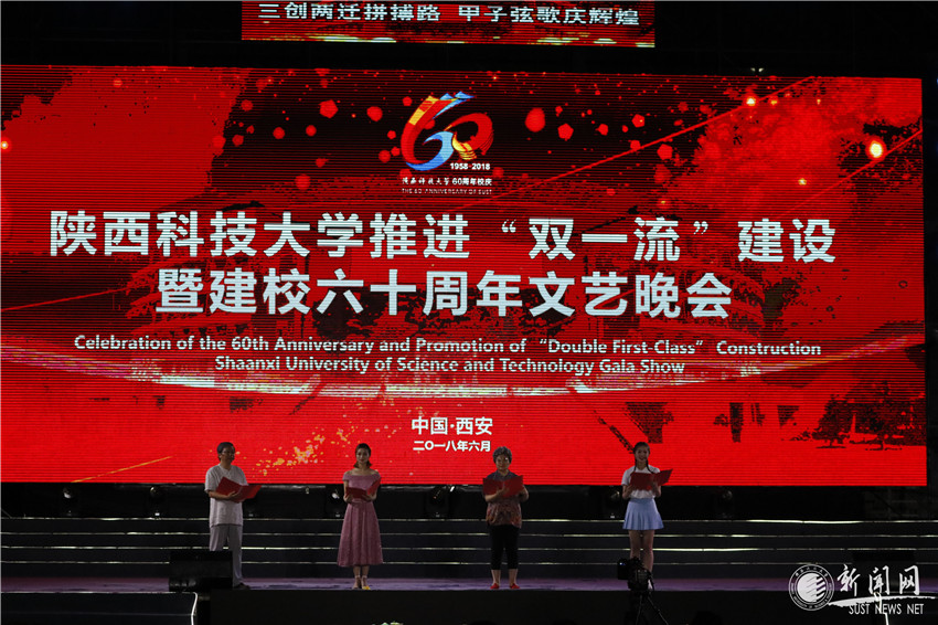 “六十載滄桑砥礪,一甲子春華秋實”,2018年6月26日晚8時,陜西科技大學(xué)60年校慶“三創(chuàng)兩遷拼搏路,甲子弦歌慶輝煌”主題演出在西安校區(qū)標(biāo)準(zhǔn)田徑場隆重舉行。出席晚會的領(lǐng)導(dǎo)嘉賓,廣大校友與近萬名師生齊聚一堂,共襄盛會,同賀陜西科技大學(xué)六十華誕。