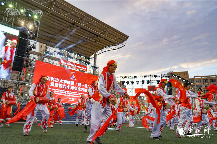 整場晚會由“尋根-歲月流金”、“鑄魂-不負(fù)韶華”、“追夢-揚帆遠(yuǎn)航”三個篇章組成,用一個個精心編排的文藝節(jié)目回顧了陜科大60載風(fēng)雨辦學(xué)史和面向未來聚焦“雙一流”建設(shè),實施“三步走”戰(zhàn)略,全面建成國內(nèi)知名、特色鮮明高水平教學(xué)研究型大學(xué)的信心和決心。