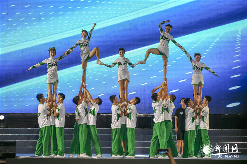 飛揚的歌聲,吟唱難忘的歲月;熟悉的旋律,演繹時代的激情。掠過歲月的斑駁、歷經(jīng)風(fēng)雨的打磨,一代代科大人愈發(fā)神采奕奕。晚會第二篇章“鑄魂—不負(fù)韶華”在我校啦啦操隊活力四射的《cheer leading show》中開篇;由我校大學(xué)生社團(tuán)帶來的原創(chuàng)音樂快板《三創(chuàng)兩遷》,全面系統(tǒng)又富有藝術(shù)表現(xiàn)力的展現(xiàn)了我校從北京創(chuàng)辦、到大義西遷再到主體東移的歷史過往,從一張張泛黃的舊照片、斑駁的老視頻到現(xiàn)代化的美麗校園,陜科大的跨越式發(fā)展凝結(jié)了一代代科大人的無私奉獻(xiàn)與頑強(qiáng)拼搏。沒有老一輩的篳路藍(lán)縷,就沒有今天科大學(xué)子的迎風(fēng)綻放,舞蹈《綻放》將到場師生的熱情徹底點燃。