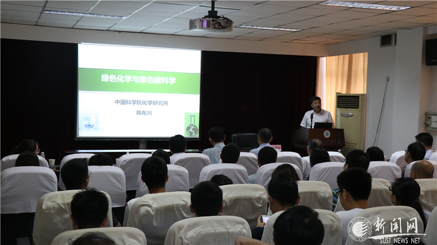 隨后,韓布興院士還在化工學(xué)院與青年教師進行了座談交流,并為化工學(xué)院師生作了題為《綠色化學(xué)與綠色碳科學(xué)》的學(xué)術(shù)報告。