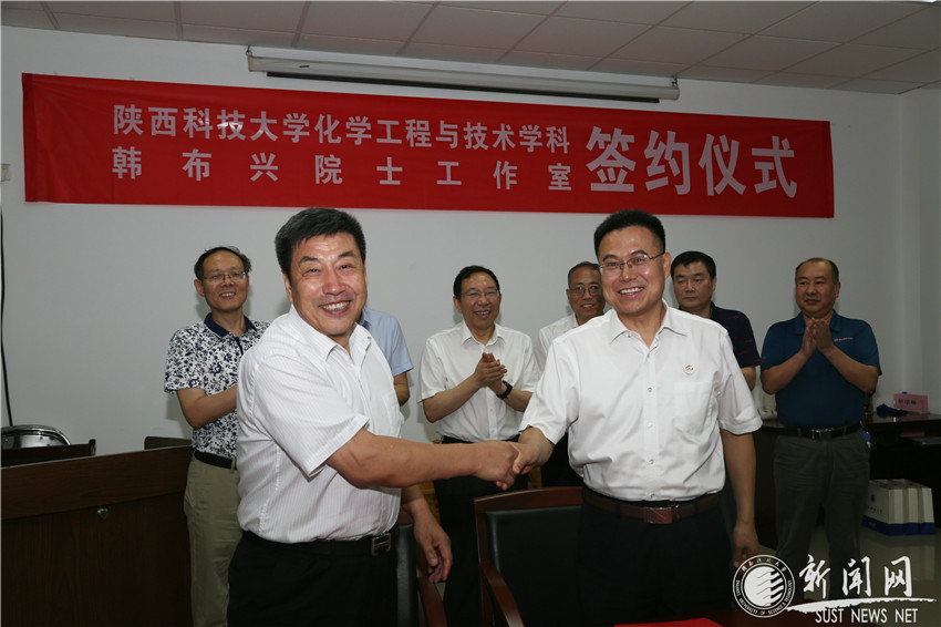 馬建中與韓布興簽署合作協(xié)議。根據(jù)協(xié)議,韓布興院士將圍繞化學(xué)和化學(xué)工程與技術(shù)學(xué)科國際前沿發(fā)展,在學(xué)科建設(shè)、科學(xué)研究、人才培養(yǎng)及產(chǎn)業(yè)化開發(fā)等方面發(fā)揮高端引領(lǐng)作用,開展綠色化學(xué)與工業(yè)催化領(lǐng)域的創(chuàng)新和攻關(guān),為學(xué)校建設(shè)一支在綠色催化材料制備、CO2轉(zhuǎn)化利用、生物質(zhì)綠色催化轉(zhuǎn)化利用和綠色溶劑等方向有影響力的研究團隊,使陜西科技大學(xué)化學(xué)工程與技術(shù)學(xué)科進入國內(nèi)一流學(xué)科行列。