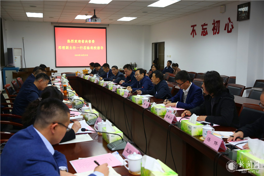 10月25日上午,陜西省決策咨詢委員會副主任、省人大原副主任鄧理一行來我校調(diào)研創(chuàng)新人才培養(yǎng)工作并召開座談會。校黨委書記姚書志、紀委書記王樹茂、副校長黃劍鋒陪同調(diào)研。