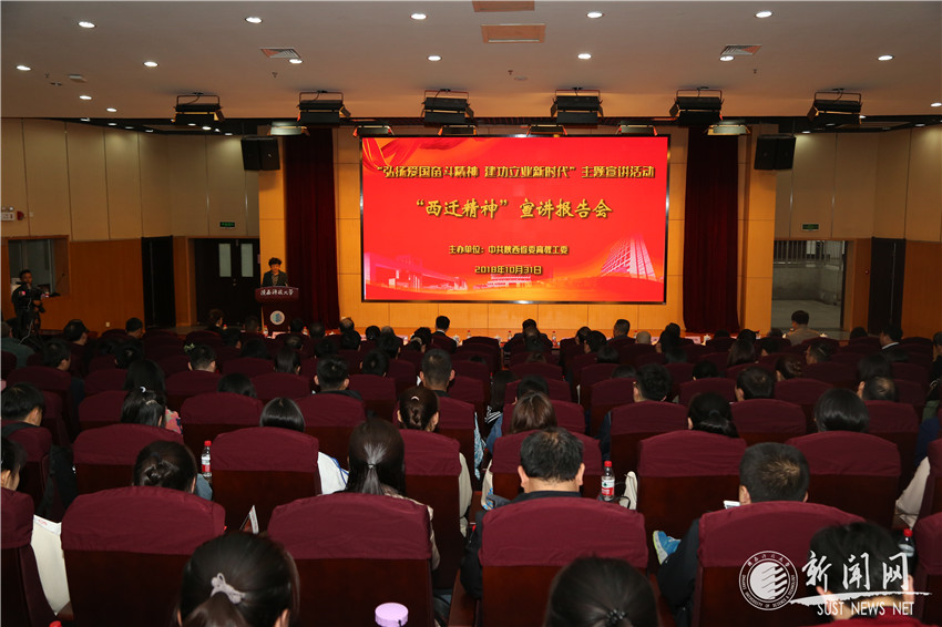 為深入學(xué)習(xí)貫徹習(xí)近平新時代中國特色社會主義思想和全國教育大會精神,陜西省委高教工委在全省高教系統(tǒng)廣泛開展“弘揚(yáng)愛國奮斗精神 建功立業(yè)新時代”活動。10月31日下午,由陜西省委高教工委主辦的“弘揚(yáng)愛國奮斗精神 建功立業(yè)新時代”主題宣講活動“西遷精神”第二場宣講報告會在我校圖書館學(xué)術(shù)報告廳舉行。陜西省委高教工委副書記陳乃霞,我校黨委書記姚書志、黨委副書記溫鋒、紀(jì)委書記王樹茂等出席報告會。西安交通大學(xué)“西遷人”愛國奮斗宣講團(tuán)由西安交大副校長鄭慶華,西遷老教授胡奈賽,中國科學(xué)院院士、西安交大電信學(xué)院教授管曉宏,生命學(xué)院教授徐峰,管理學(xué)院在讀博士生、科技扶貧博士團(tuán)成員林舒進(jìn)和《光明日報》記者唐芊爾等成員組成。報告會由省委高教工委宣傳部部長冀映秋主持。