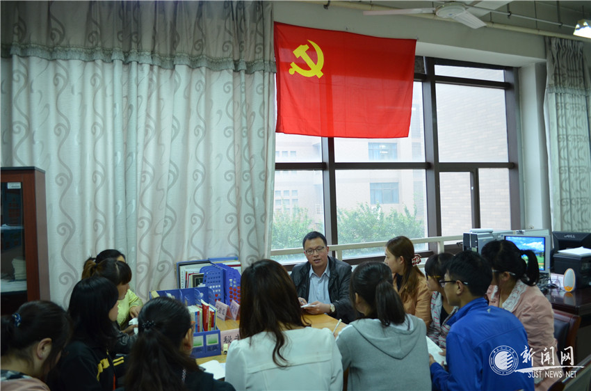 李萌正在給學(xué)生黨員骨干開(kāi)會(huì)