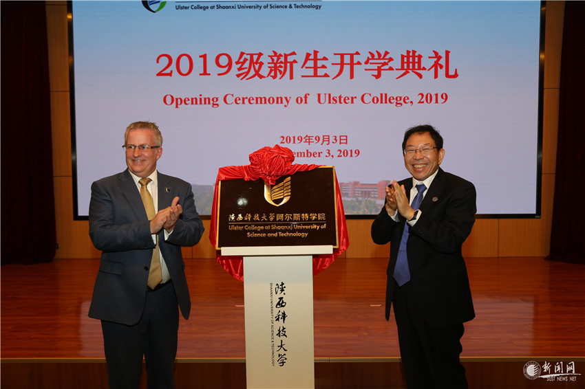 隨后,校黨委書記姚書志代表學校與阿爾斯特大學校長派迪·尼克松共同為陜西科技大學阿爾斯特學院揭牌。