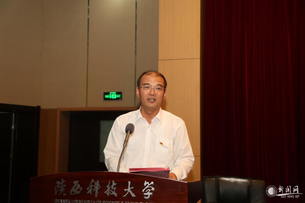 校黨委副書記溫鋒宣讀“陜西科技大學(xué)關(guān)于表彰2018年度優(yōu)秀教師及先進(jìn)工作者的決定”和“陜西科技大學(xué)關(guān)于表彰從教滿30年榮譽(yù)教師的決定”。