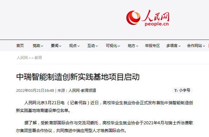 2021年4月,受教育部國際合作與交流司委托,高校畢業(yè)生就業(yè)協(xié)會與瑞士喬治費歇爾集團簽署合作協(xié)議,共同推進中瑞應用型人才培養(yǎng)國際合作。該項目旨在引入瑞士智能制造領域應用型和技術(shù)技能型人才培養(yǎng)的先進模式,借鑒國際“雙元制”教育經(jīng)驗,開展中國特色、世界水平的高素質(zhì)人才培養(yǎng)合作新模式探索。在學校大力支持指導下,由教務處主辦、機電學院承辦、電氣與控制工程學院協(xié)辦,于6月初向教育部——瑞士GF教育合作項目辦公室遞交了申請報告。