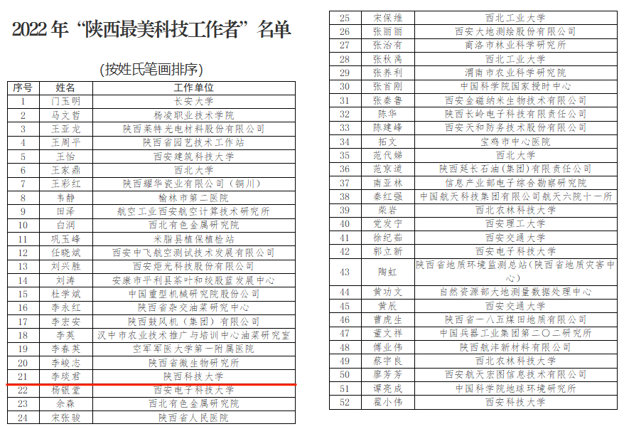 此次“尋找陜西最美科技工作者”活動是基于全國性的一次尋找和宣傳奮戰(zhàn)在科研一線的優(yōu)秀工作者活動。我省由省委組織部、省委宣傳部、省科技廳、省科協(xié)共同組織開展,通過層層推薦選拔,共評選出52名長期扎根陜西,服務基層一線,成績突出的優(yōu)秀科技工作者代表,并授予2022年“陜西最美科技工作者”榮譽稱號,以此鼓勵全省科技工作者以獲表彰同志為榜樣,學習他們心有大我、至誠報國的高尚品質,學習他們艱苦奮斗、無私奉獻的優(yōu)秀品格,主動擔負起時代賦予的使命責任,為陜西高質量發(fā)展貢獻智慧和力量。