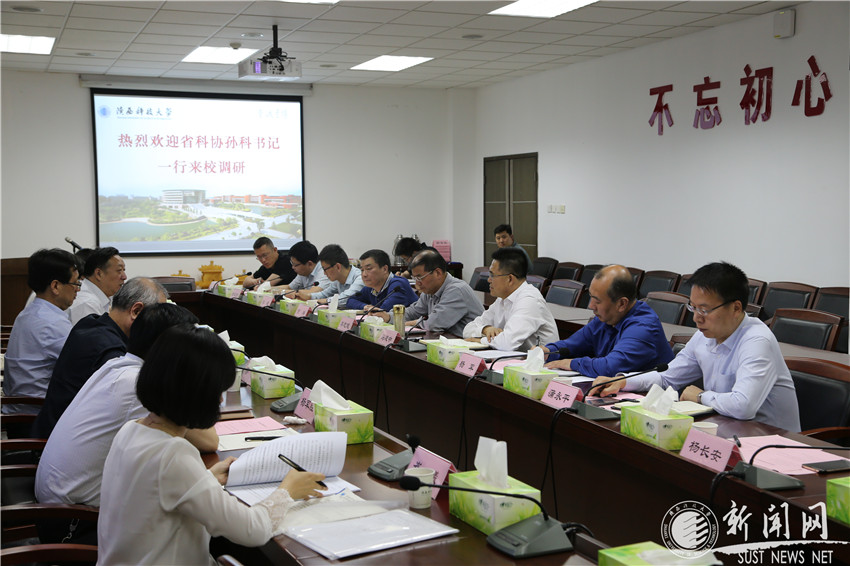 孫科指出,高校是科技工作者密集、科技人才薈萃、科技社團活躍的地方。陜西科技大學是西部地區(qū)唯一一所以輕工為特色的多科性大學,是陜西省重點建設的高水平大學,近年來,學校在發(fā)展過程中取得了諸多成績,整體水平居省屬高校前列。他表示,科協(xié)作為黨和政府聯(lián)系科技工作的橋梁紐帶,要按照“為科技工作者服務、為創(chuàng)新驅動發(fā)展服務、為黨和政府科學決策服務、為提高全民科學素質服務”的職責任務,加強與陜西科技大學聯(lián)系與合作。雙方還就弘揚 “大西遷精神”、尋找最美科技工作者、重視學會建設、加強人才培養(yǎng)和舉薦等事項進行了座談交流。