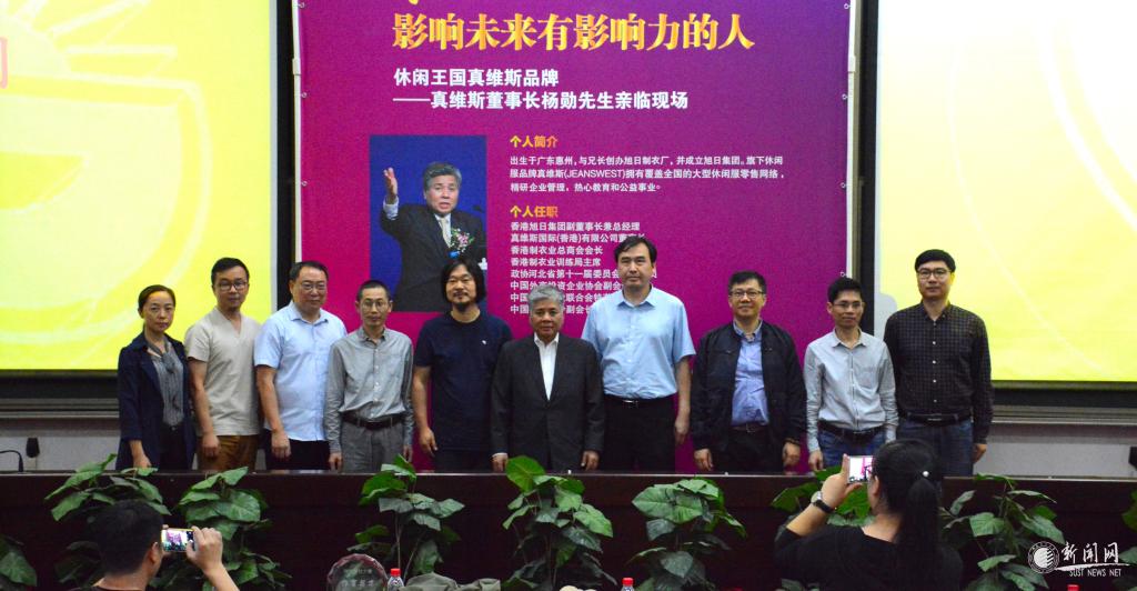 9月9日,應(yīng)設(shè)計與藝術(shù)學院邀請,真維斯國際(香港)有限公司董事長楊勛來我校,在3號教學樓101教室為師生做了題為“創(chuàng)業(yè)與守業(yè)”的報告會。此前該報告已在北京大學、清華大學等91所高校引起強烈反響,陜科大作為高校分享的第115站,吸引了近500名學生參會。真維斯公司相關(guān)負責人、學院班子成員、教師代表出席會議。報告會由設(shè)藝學院執(zhí)行院長詹秦川主持。