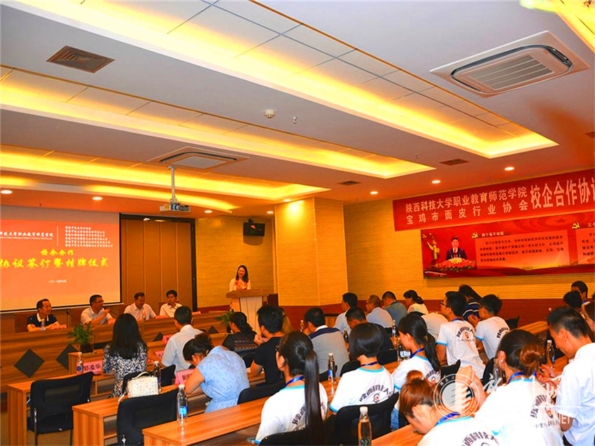 7月17日上午,我校職業(yè)教育師范學(xué)院與寶雞六家企業(yè)在寶雞市鵬博財(cái)富中心簽訂校企合作協(xié)議。寶雞市商務(wù)局副局長(zhǎng)段長(zhǎng)軍,金臺(tái)區(qū)人社局局長(zhǎng)王賢輝,寶雞市面皮行業(yè)協(xié)會(huì)會(huì)長(zhǎng)、富方圓食品機(jī)械有限責(zé)任公司董事長(zhǎng)張新懷,寶雞市香味氏族餐飲文化管理有限公司總經(jīng)理王毅,寶雞憶路創(chuàng)客電子商務(wù)有限公司總經(jīng)理?xiàng)罹?,岐山縣怡源食品有限公司總經(jīng)理羅軍偉,寶雞和渲得餐飲文化管理有限公司總經(jīng)理孫燕博,我校職業(yè)教育師范學(xué)院黨委書記王貴平,黨委副書記薛力源及職教學(xué)院“小食代”社會(huì)實(shí)踐團(tuán)參加此次簽約儀式。