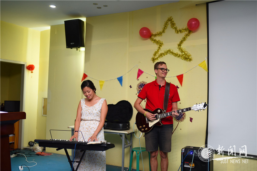 8月11日晚,本次夏令營(yíng)閉營(yíng)儀式在逸夫樓二層設(shè)藝學(xué)院小劇場(chǎng)舉行,中加雙方全體成員及國(guó)際處和文理學(xué)院相關(guān)代表出席參加。閉營(yíng)儀式上,大家精心準(zhǔn)備了兼具中國(guó)和加拿大文化特色的節(jié)目,先后表演了《中國(guó)加拿大之歌》、《紙扇情緣》、《東游記》、《雙簧記》、《熱情的八月》等精彩的才藝展示節(jié)目,優(yōu)勝者還得到精美的獎(jiǎng)品。同時(shí),由中加學(xué)員共同組建的樂(lè)隊(duì)Exchange現(xiàn)場(chǎng)用中英雙語(yǔ)演唱了多首美妙動(dòng)聽(tīng)的歌曲。國(guó)際處副處長(zhǎng)薛朝華、文理學(xué)院院長(zhǎng)藺小林和加拿大方領(lǐng)隊(duì)羅賓·舒戈特(Robin Shugart)女士分別致辭,祝賀本次夏令營(yíng)的圓滿成功。