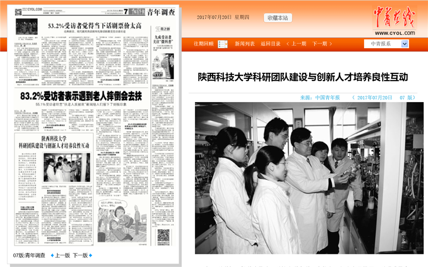 7月20日,《中國(guó)青年報(bào)》以《陜西科技大學(xué)科研團(tuán)隊(duì)建設(shè)與創(chuàng)新人才培養(yǎng)良性互動(dòng)》為題,長(zhǎng)篇報(bào)道我校輕工科學(xué)與工程學(xué)院圍繞傳統(tǒng)輕工專業(yè)的優(yōu)勢(shì),堅(jiān)持以人才培養(yǎng)為工作重點(diǎn),大力加強(qiáng)教師隊(duì)伍建設(shè)和科研平臺(tái)建設(shè)。