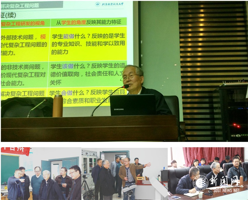申功璋從我國高等工程教育認證的歷程談起,介紹了工程專業(yè)認證的必要性、工程專業(yè)認證的標準體系、關(guān)鍵指標的解讀以及工程專業(yè)認證工作開展的注意事項等,并對以能力為核心的課程體系構(gòu)建、復(fù)雜工程問題解決能力的培養(yǎng)等問題,進行了深入分析;他還結(jié)合目前專業(yè)認證開展的實際情況,分析了在認證工作中可能會產(chǎn)生的誤解及存在的問題,并從畢業(yè)要求達成度、課程目標達成度、持續(xù)改進工作機制等方面提出了建議,報告會共進行3個半小時。第二天上午,申功璋在黨宏社的陪同下參觀了學(xué)院實驗室,并對學(xué)院各專業(yè)負責(zé)人、自動化和電子信息工程專業(yè)的老師就申請書撰寫中的問題進行了指導(dǎo)。