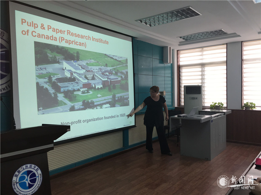 米歇爾·瑞米德作了題為“加拿大林產(chǎn)品創(chuàng)新研究院的簡介和研究動(dòng)態(tài)”的學(xué)術(shù)報(bào)告。她首先簡單介紹了加拿大紙漿和造紙研究所及加拿大森林產(chǎn)品創(chuàng)新工業(yè)研究院。緊接著介紹其研究院從森林到市場的整個(gè)鏈、其獨(dú)特靈活的商業(yè)模式、研究院上游部門等,當(dāng)米歇爾·瑞米德講到木材建造多層建筑及道路橋梁等的新的解決方案時(shí),引起全體師生的極大興趣。隨后詳細(xì)講解纖維素納米晶體、纖維素纖絲和木素產(chǎn)品的工業(yè)應(yīng)用以及生物質(zhì)品和環(huán)境服務(wù)的關(guān)系等,讓我們看到了紙漿和造紙未來更大的發(fā)展和應(yīng)用前景。
