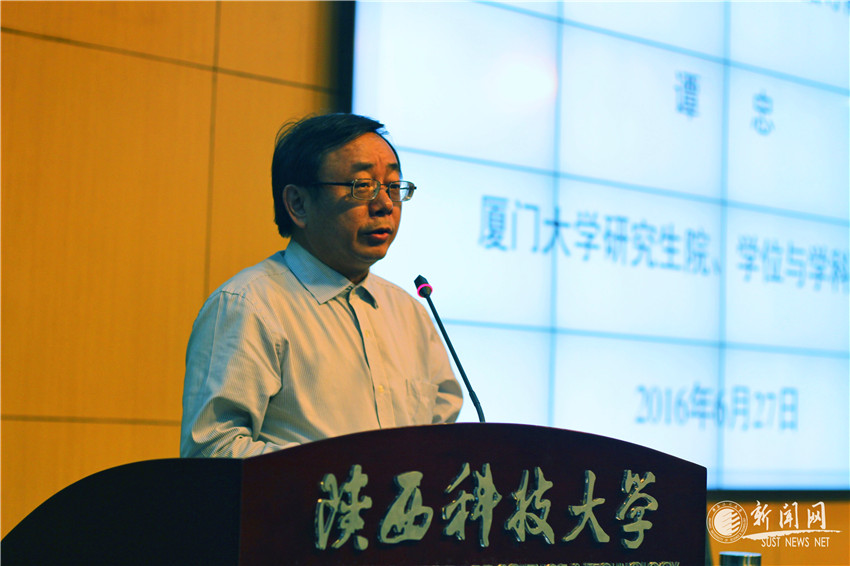 6月27日下午,廈門大學研究生院副院長、學位建設辦公室主任譚忠教授應邀做客我?!懊麕熣搲?,為我校研究生導師做了題為“如何提高研究生導師指導能力”的報告。報告由教師發(fā)展中心常務副主任徐永建教授主持。研究生院領導、部分學院分管研究生工作的副院長參加,西安工業(yè)大學的相關教師代表也專程來聆聽了報告。